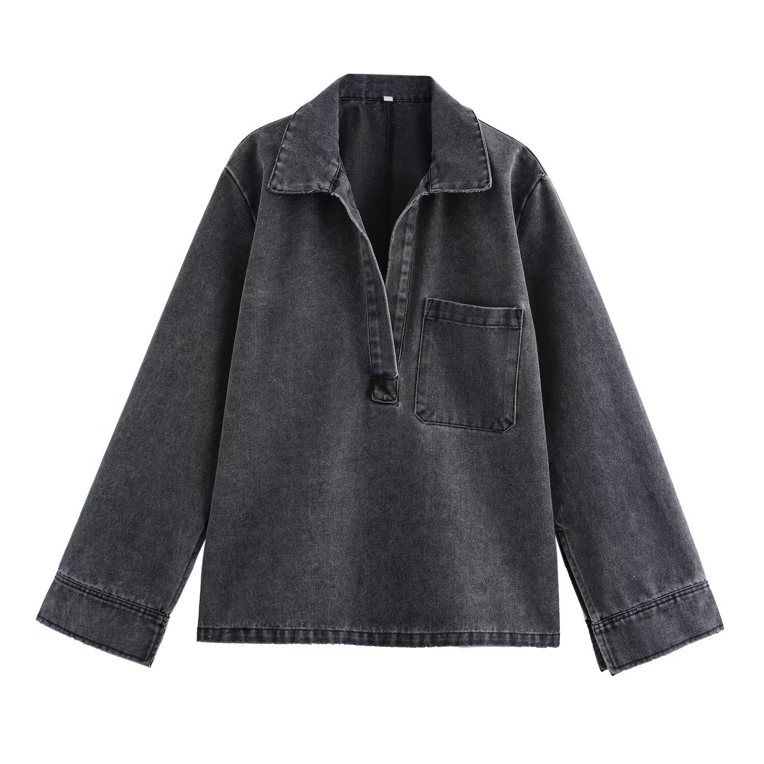 Амазонка оптом Осень новый пуловер с отворотом карман рубашка с длинным рукавом на шнурке повседневные брюки джинсовый костюм женский