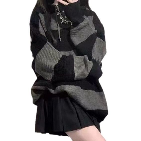 Главная страница > Женский свитер-кардиган в полоску, свободного кроя, средней длины, с капюшоном, утолщенный, в стиле американского ретро, модный, осень-зима 2025 года.