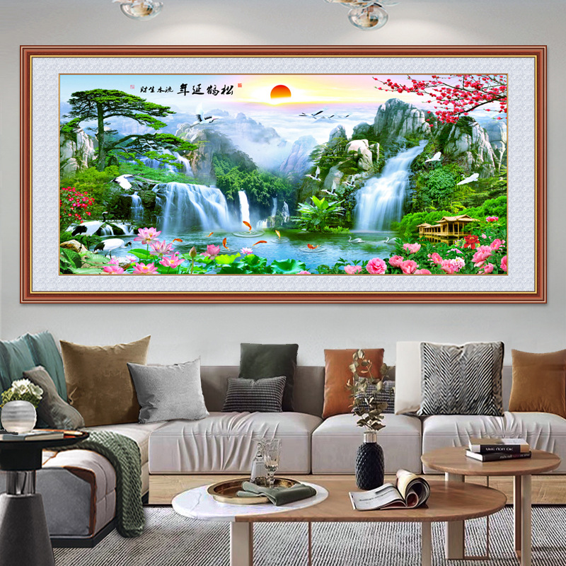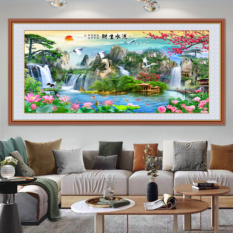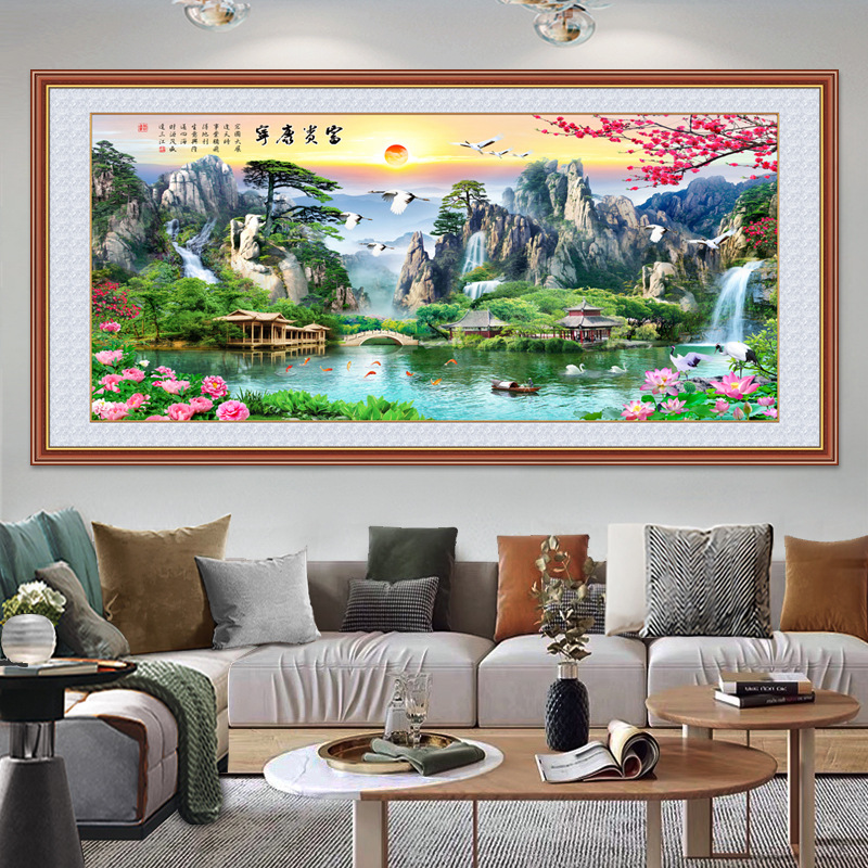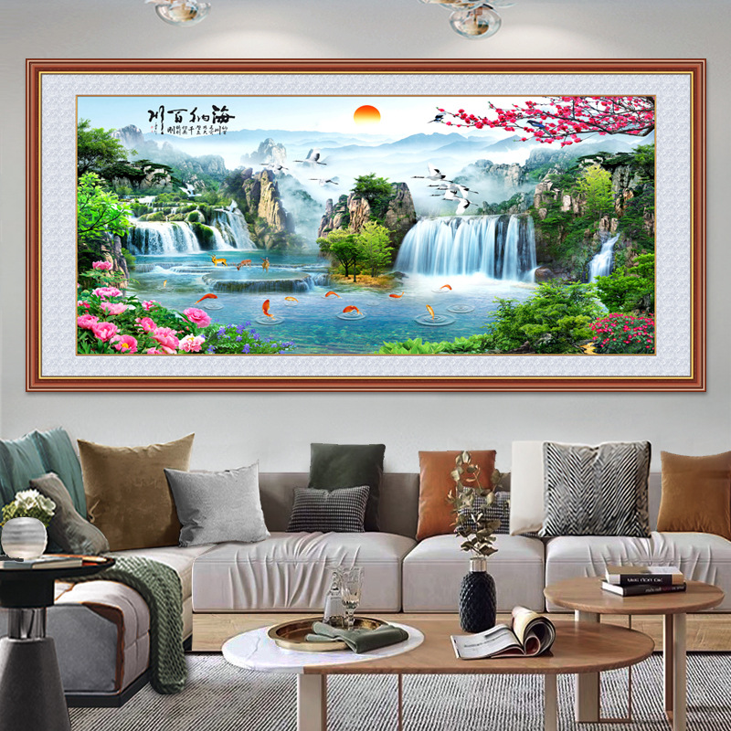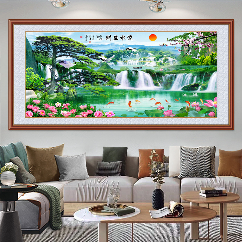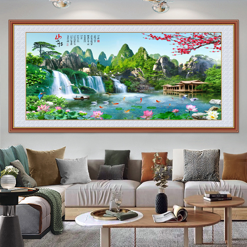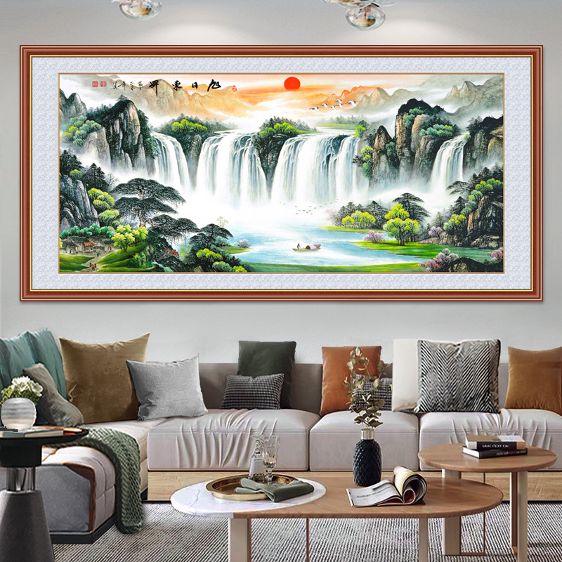 Главная страница > Горы и реки шоу самоклеящаяся фреска иллюстрация домашнего гостиной диван фон стены пейзажная роспись офиса самоклеящиеся обои