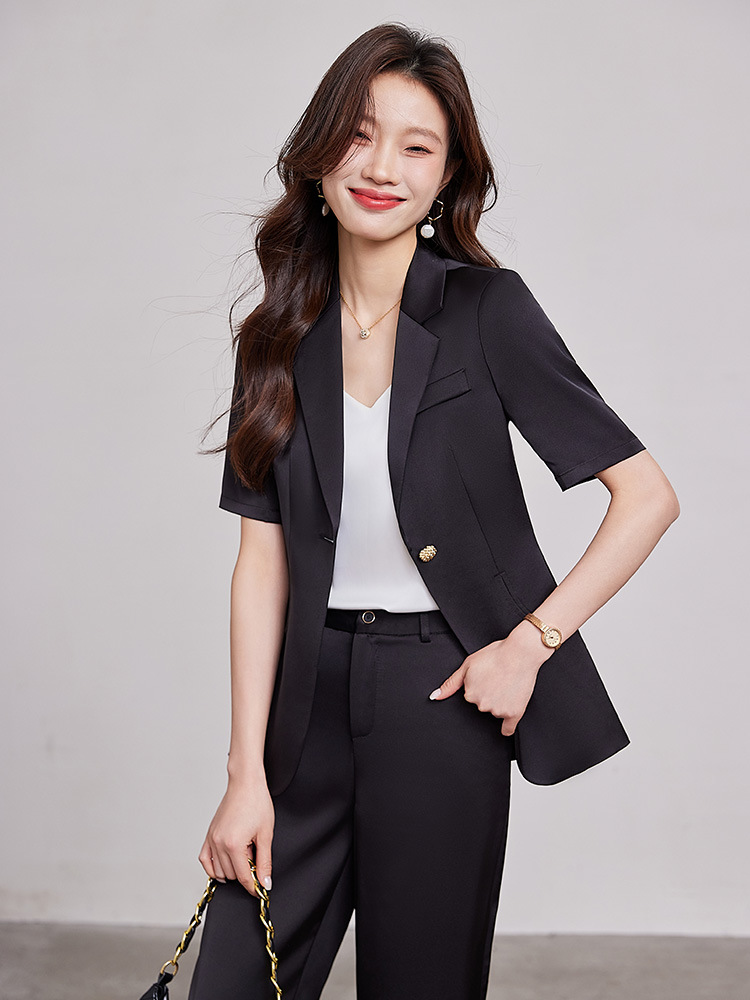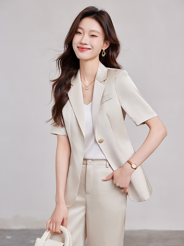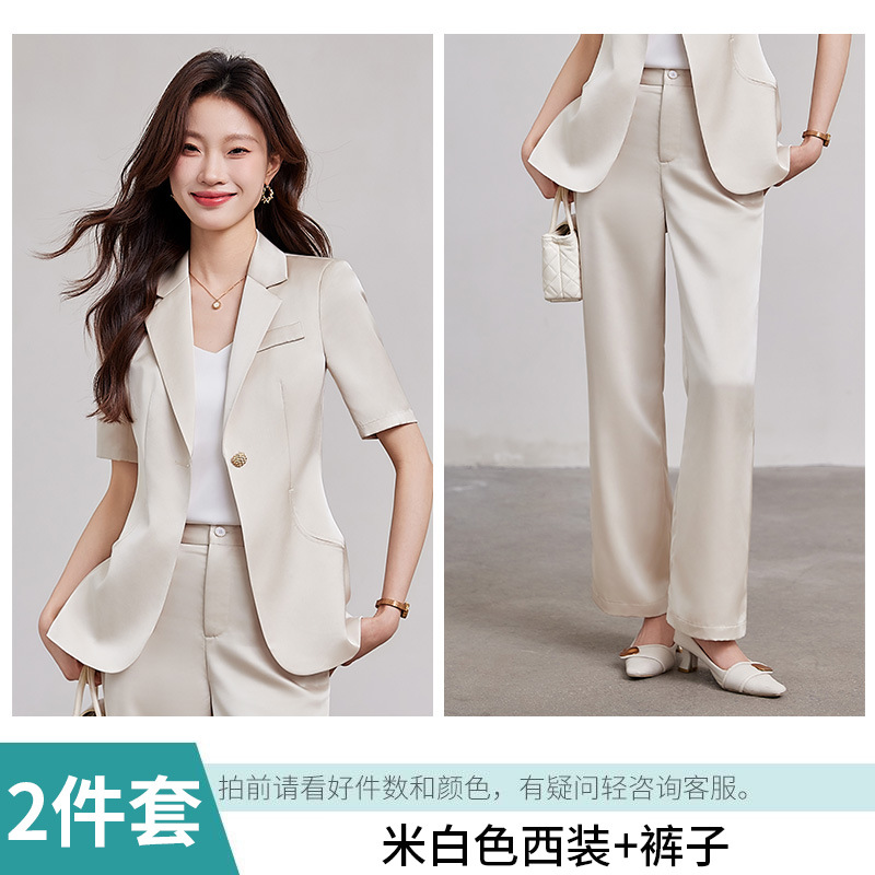 Главная страница > Премиум Чувство Летний тонкий костюм с короткими рукавами женский пятиразделенный рукав новый уксусная кислота для отдыха на рабочем месте широкие брюки