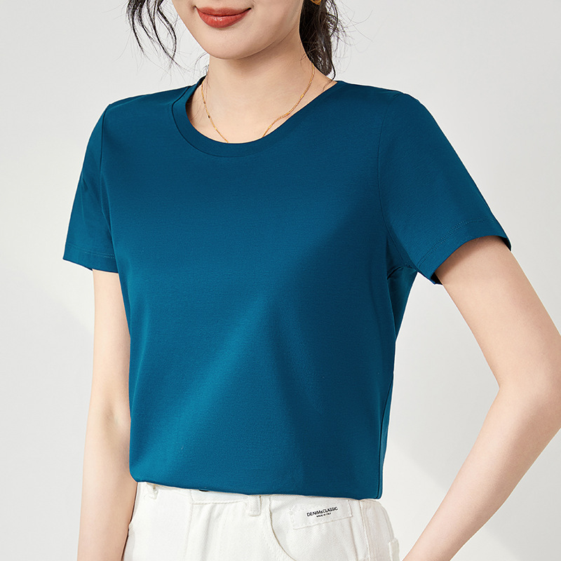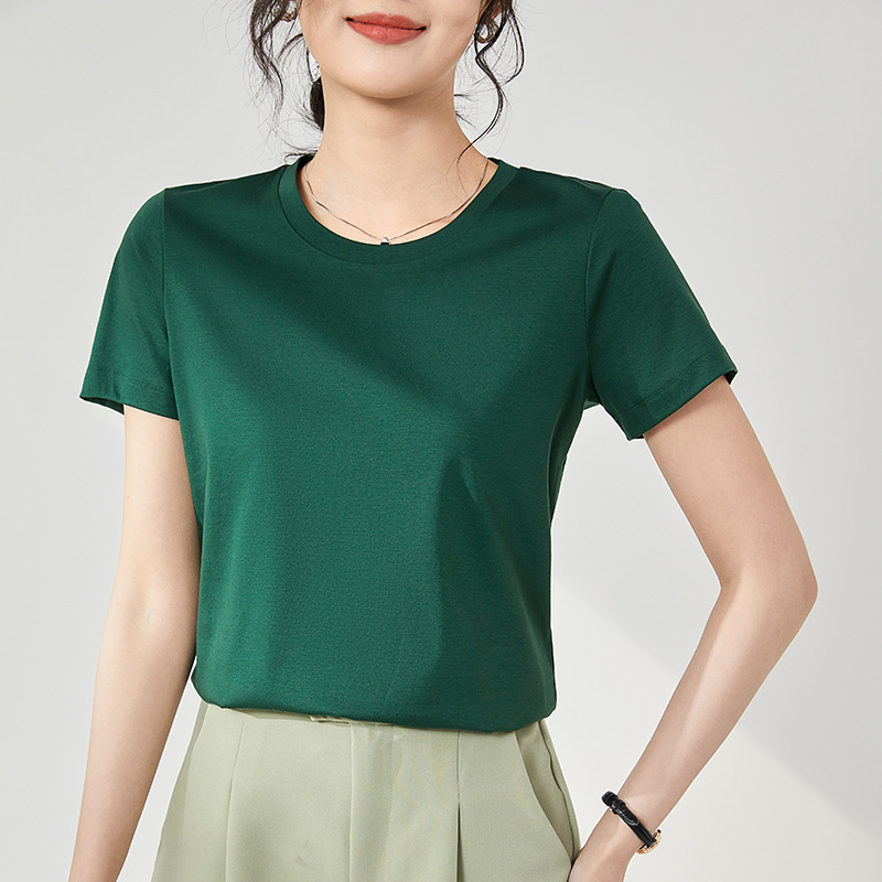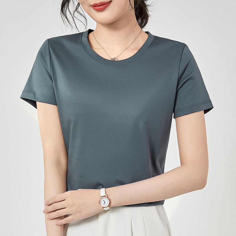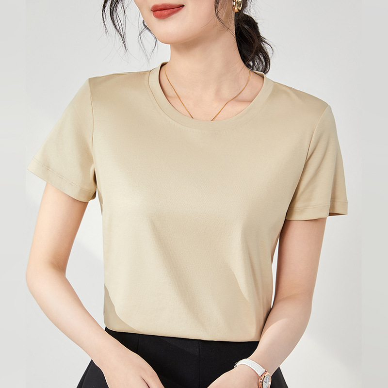 Главная страница > Оптовая продажа нового 2024 летнего платья шелковистый хлопок женский короткий рукав с круглым вырезом сплошной цвет основы