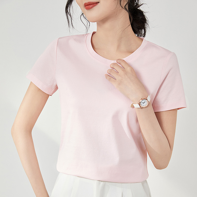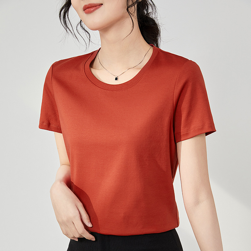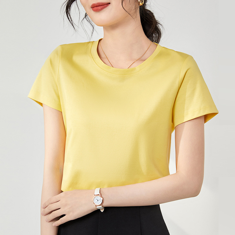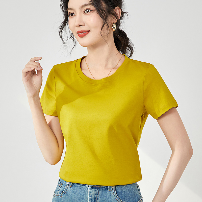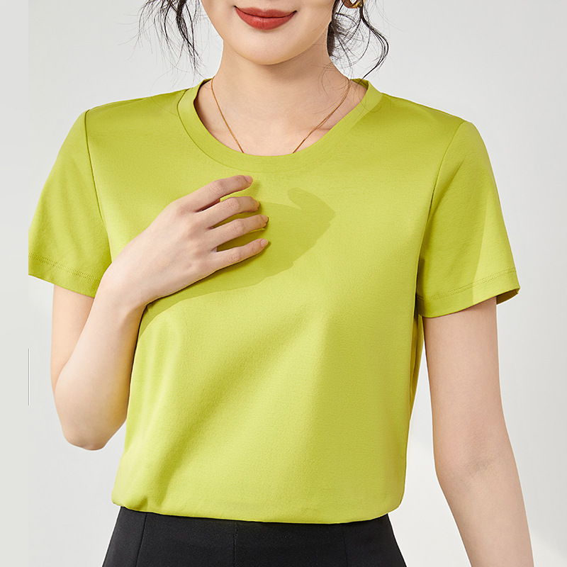 Оптовая продажа нового 2024 летнего платья шелковистый хлопок женский короткий рукав с круглым вырезом сплошной цвет основы