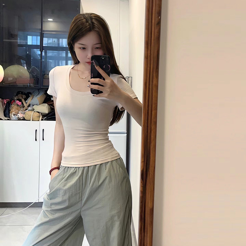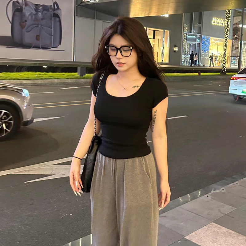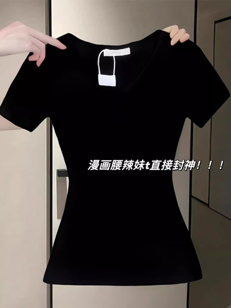 Главная страница > Черная футболка с прямыми плечами женская рубашка с короткими рукавами