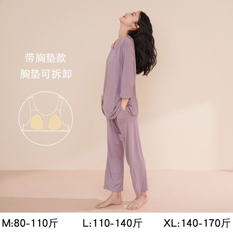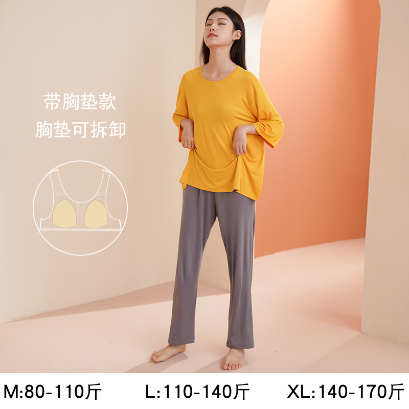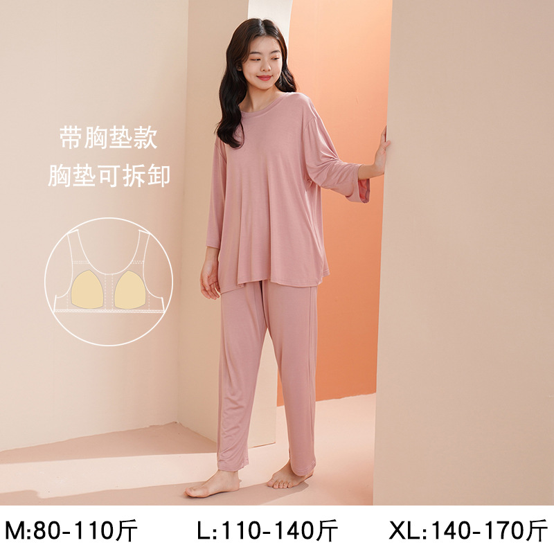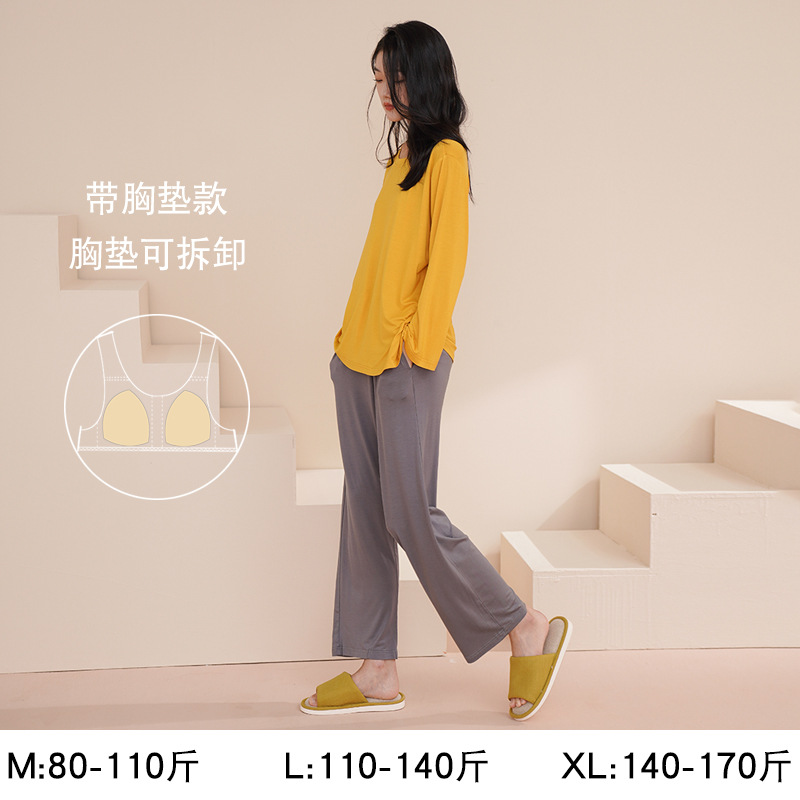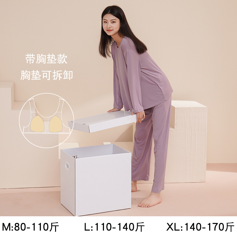 Главная страница > Женская пижама с длинным рукавом, осенний модал, новинка 2025 года, элитный стиль, большие размеры, можно носить на выход, осенне-зимняя домашняя одежда с подушечками для груди