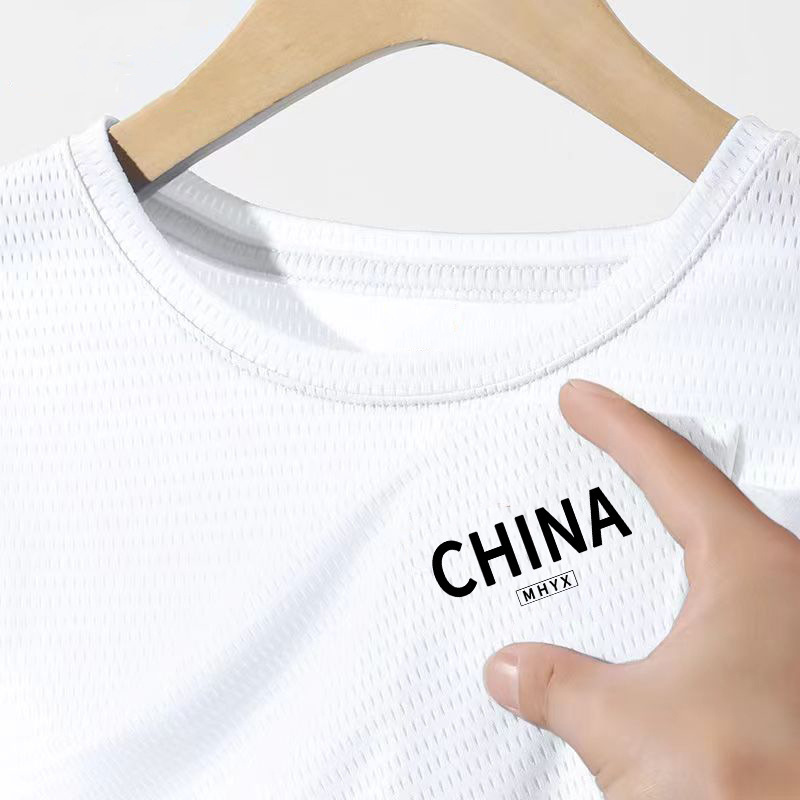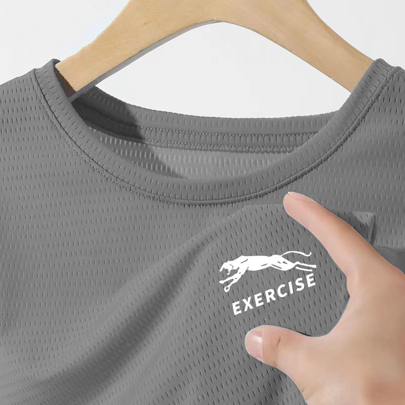 Сетчатая футболка с короткими рукавами для мужчин летом новая быстродушащая и дышащая спортивная рубашка свободная ледяная шелковая сетка для фитнеса одежды оптом