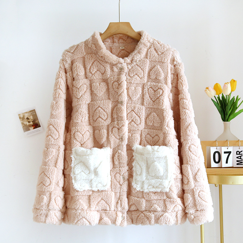 Главная страница > Любовная Пижама-блузка, одиночный кардиган с длинными рукавами, осень/зима, фланелевая флисовая подкладка, утолщенная теплая, можно носить домашнюю одежду