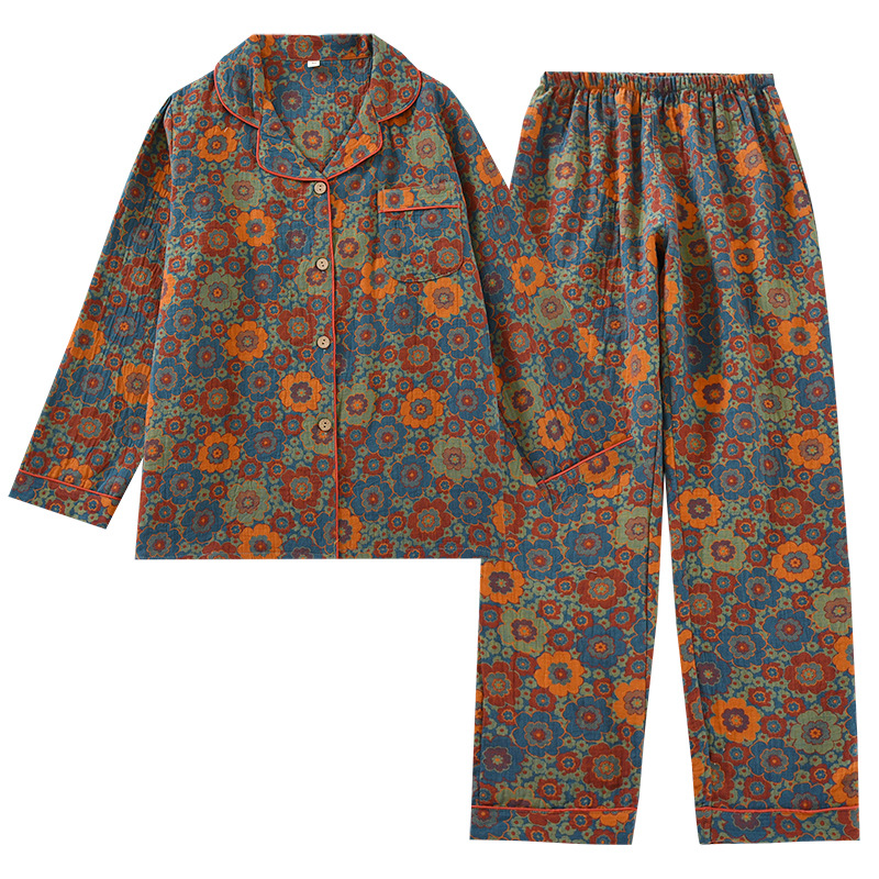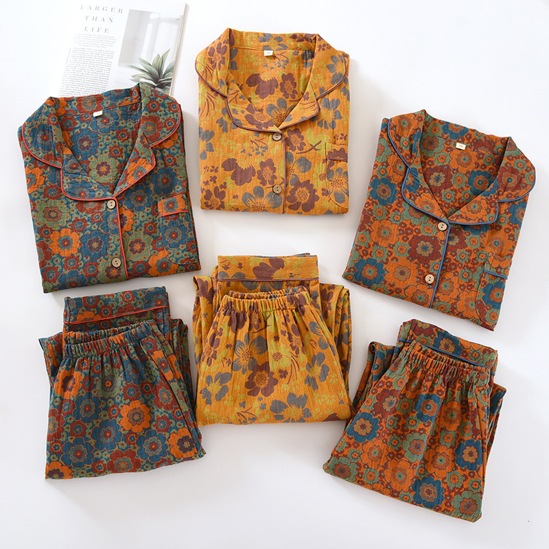 Главная страница > Винтажная окрашенная в пряже марлевая Хлопковая пижама, женские тонкие брюки с длинными рукавами на весну и осень-лето, повседневный простой костюм для домашней одежды