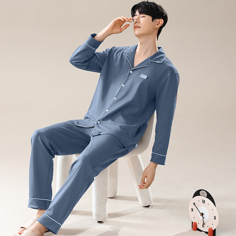 Главная страница > Пижама мужская весенняя и осенняя хлопковая с длинными рукавами мужская осенняя хлопковая тонкая мужская кардиган большой размер осенняя и зимняя домашняя одежда