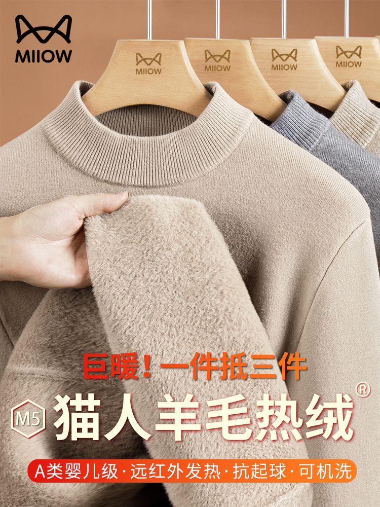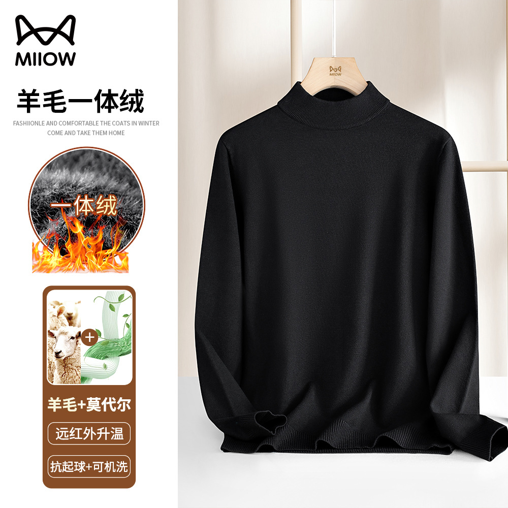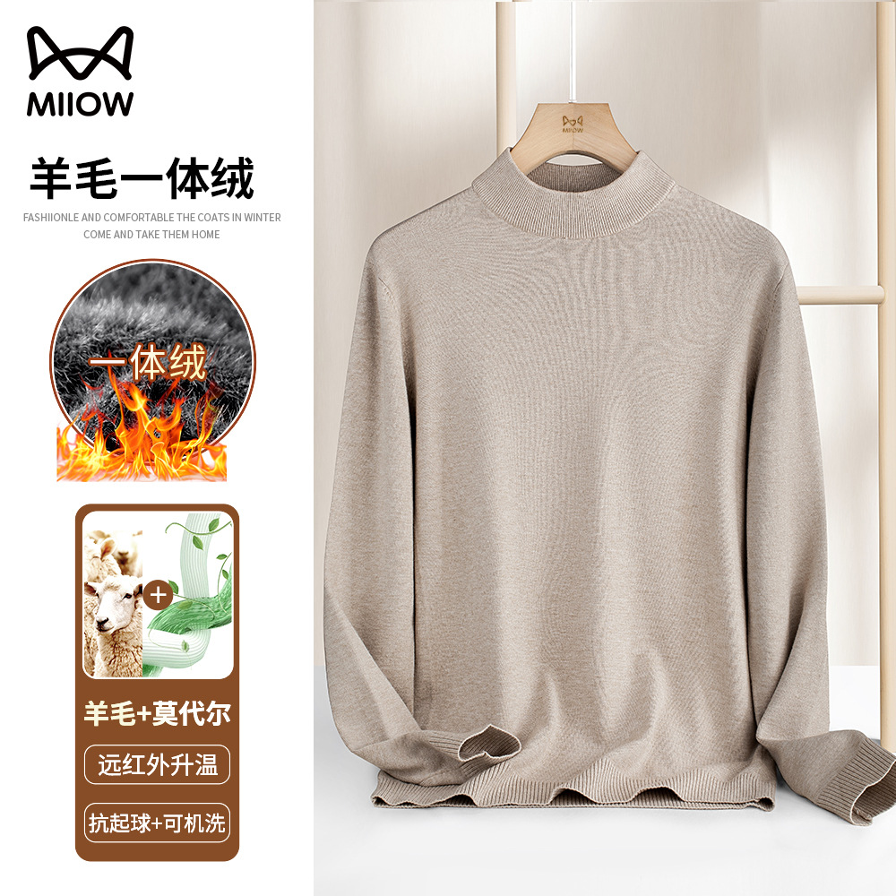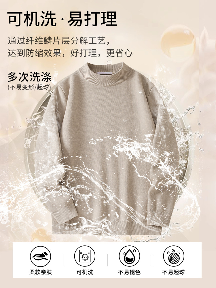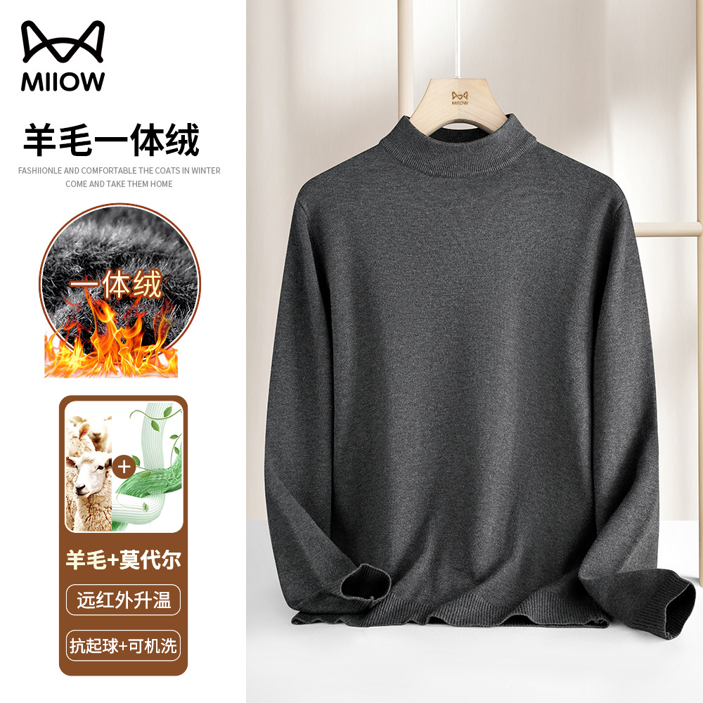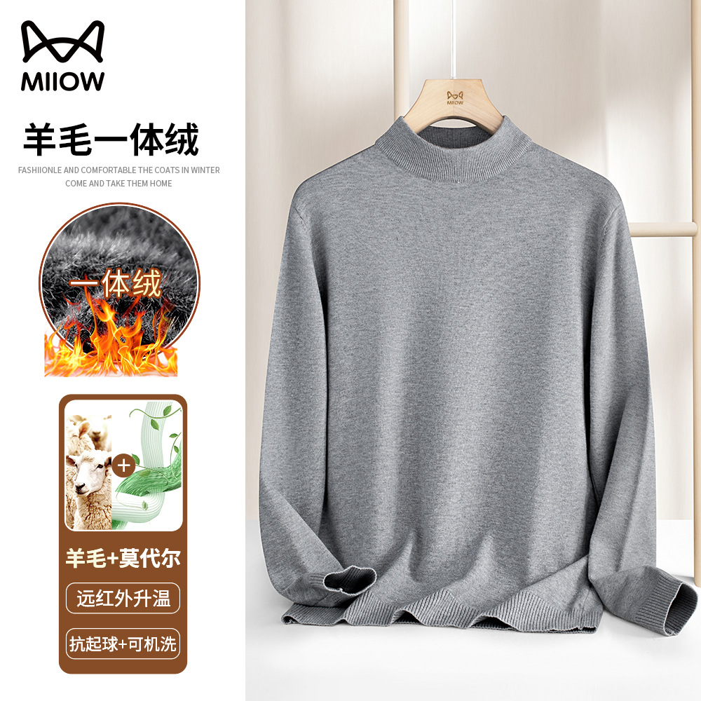 Главная страница > 【Защита от холода】Мужской свитер из шерсти и модала с интегрированным флисом, полувысокий воротник, высококачественный теплый трикотажный базовый слой