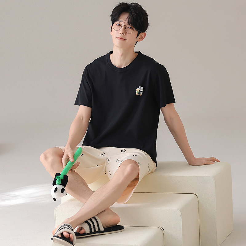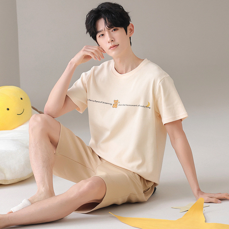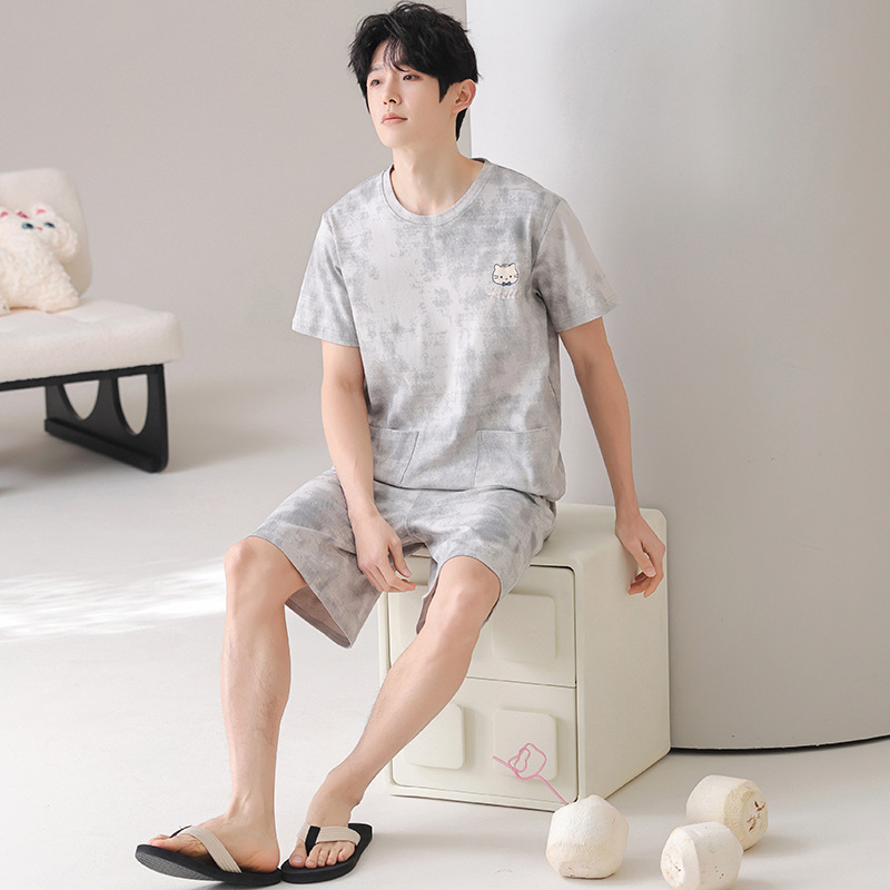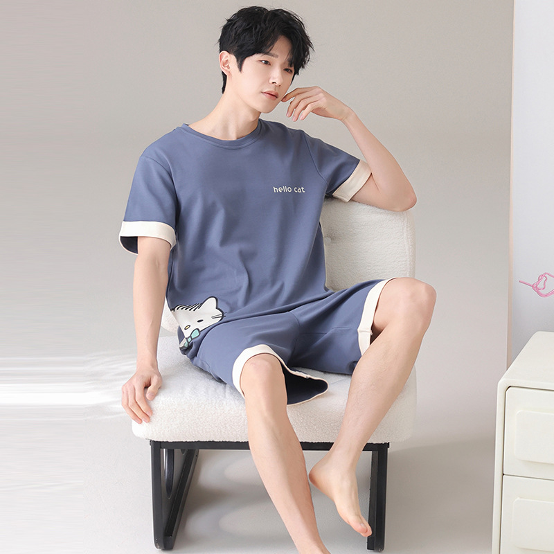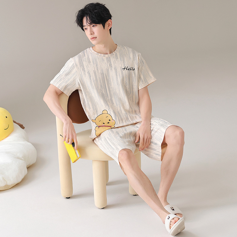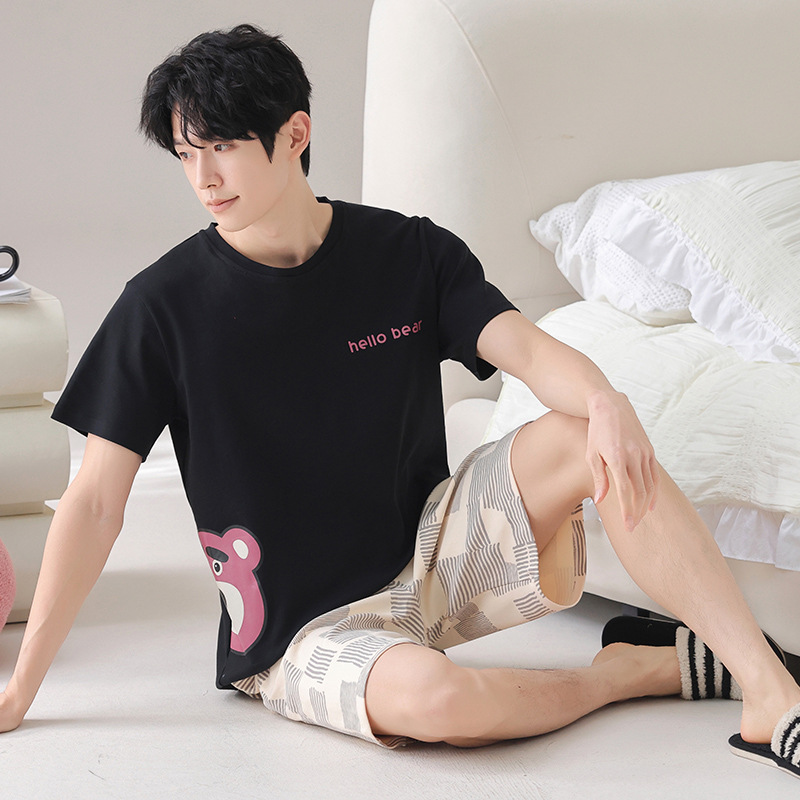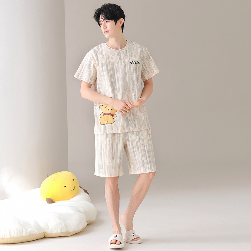 Главная страница > Пижамы мужские из чистого хлопка, летние шорты с короткими рукавами для мальчиков, тонкие весенне-летние мужские молодежные комплекты домашней одежды с героями мультфильмов