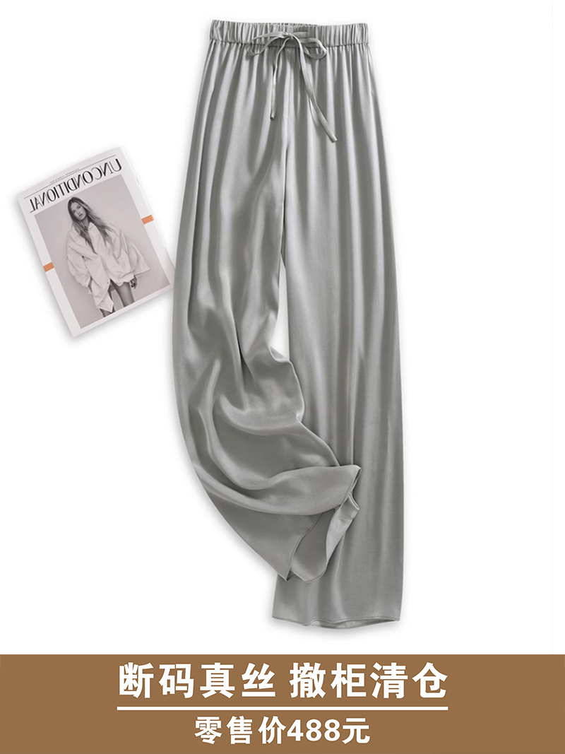 Главная страница > Прямые брюки длиной до пола из шелка шелковицы с высокой талией, крутые и дышащие повседневные брюки, новые летние шелковые широкие брюки для женщин