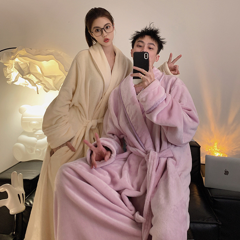 Главная страница > Молочный бархат плюс 300 кг халат зимой толстый, продвинутый отель длинный, спа-халат пара пижамы для мужчин и женщин