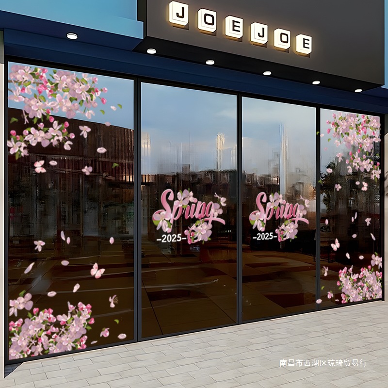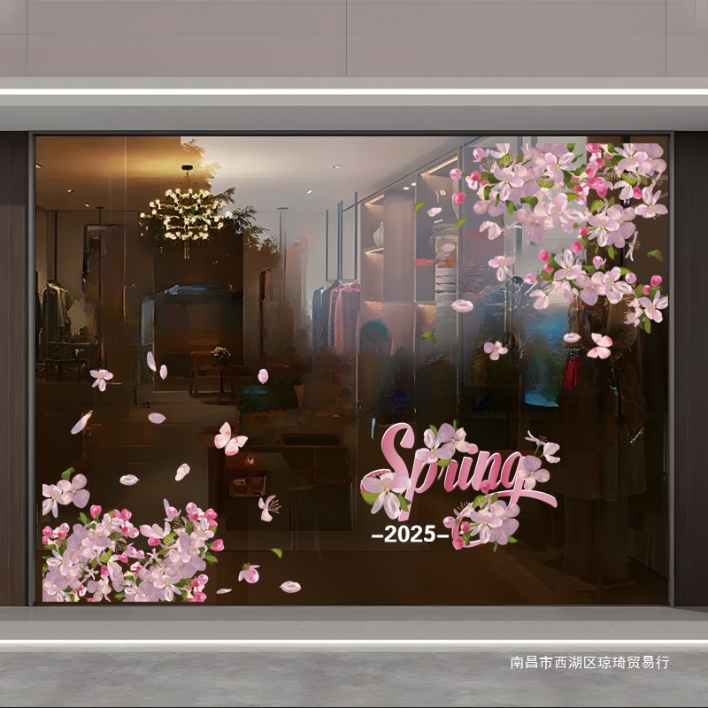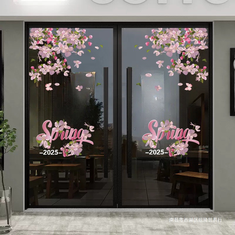 2025 весенний день вишневый цвет статические наклейки для одежды ювелирный магазин атмосфера магазина стеклянные двери витрины декоративные наклейки