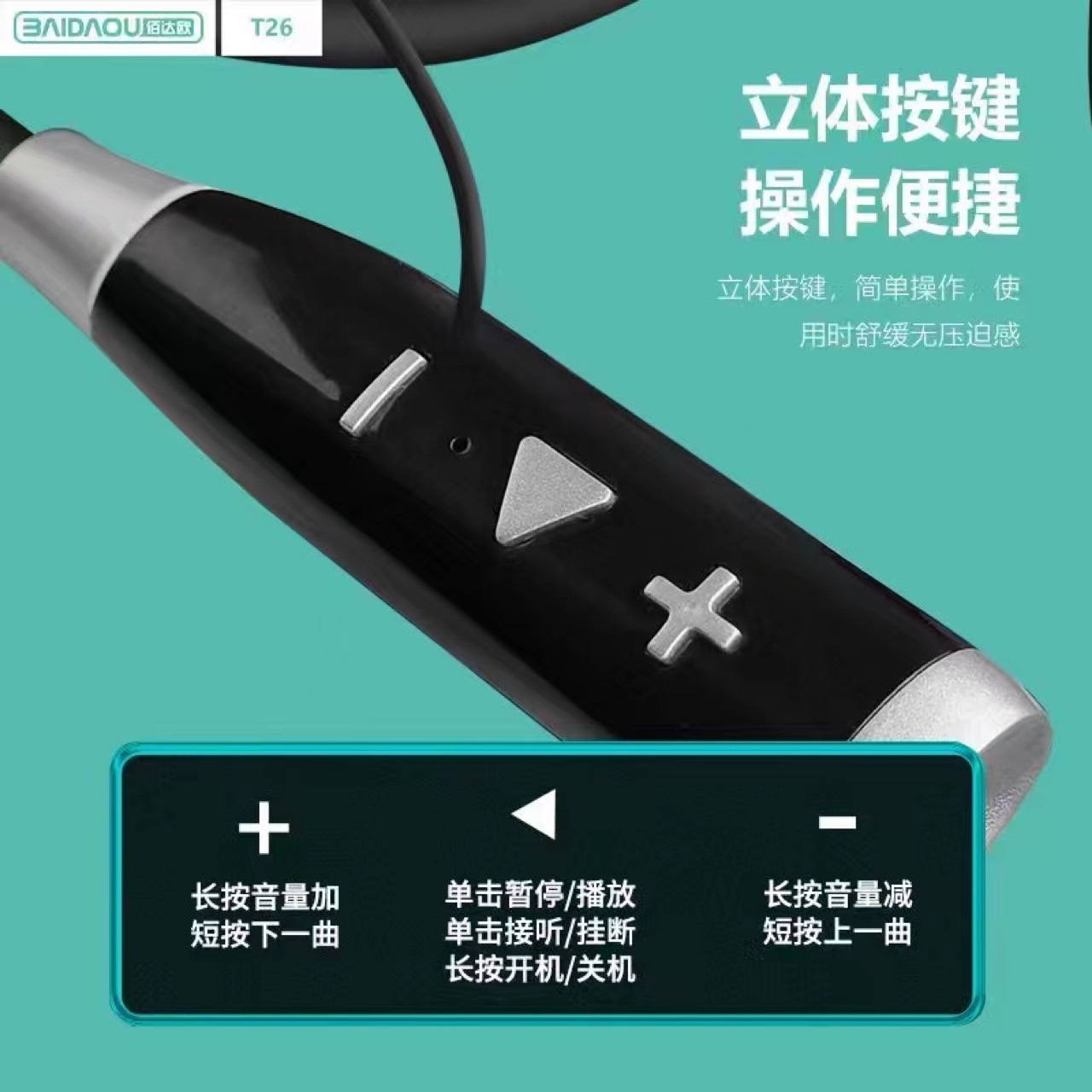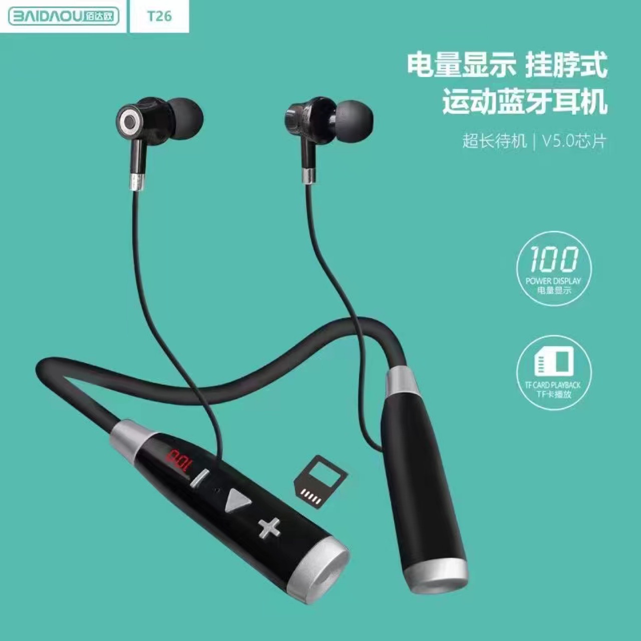 Главная страница > Baida Ou T26 Спортивная Bluetooth-гарнитура со сверхдлинным вырезом в режиме ожидания Сабвуфер с цифровым дисплеем T27