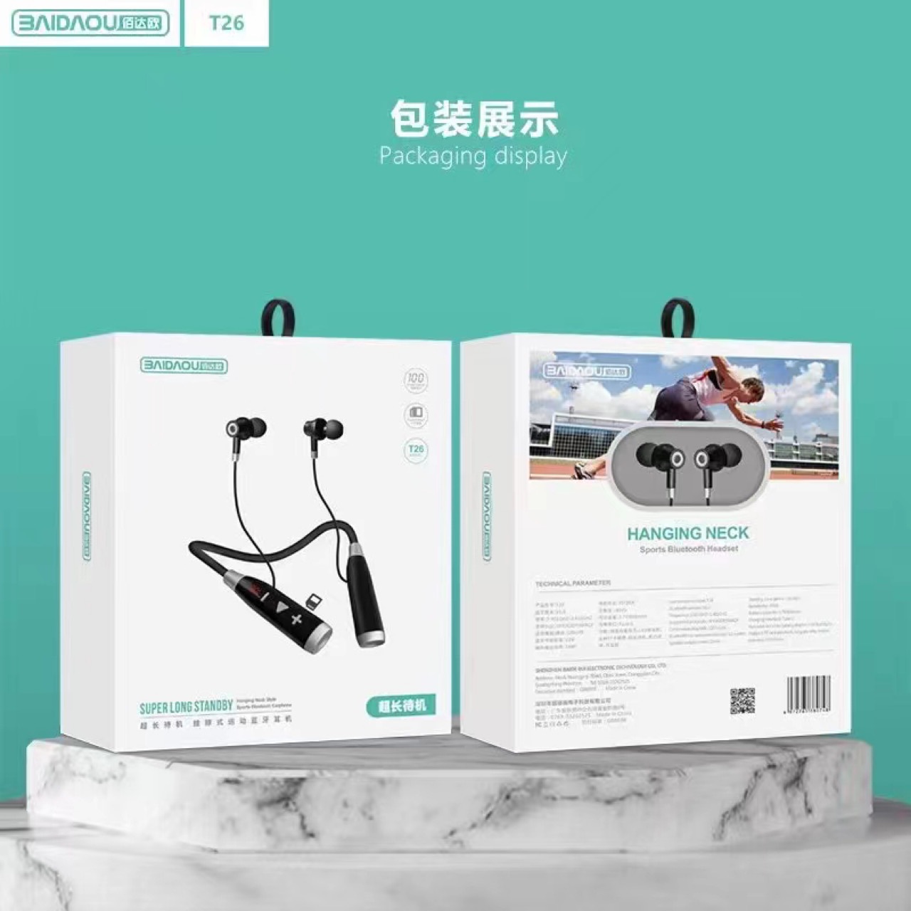 Baida Ou T26 Спортивная Bluetooth-гарнитура со сверхдлинным вырезом в режиме ожидания Сабвуфер с цифровым дисплеем T27