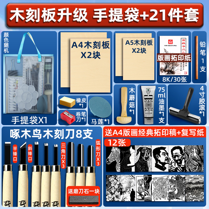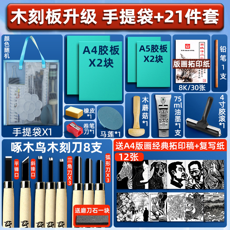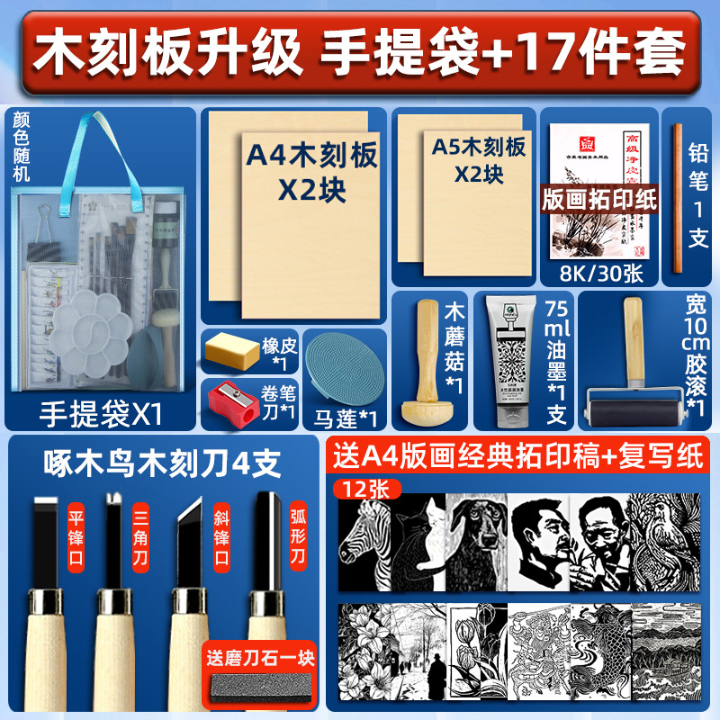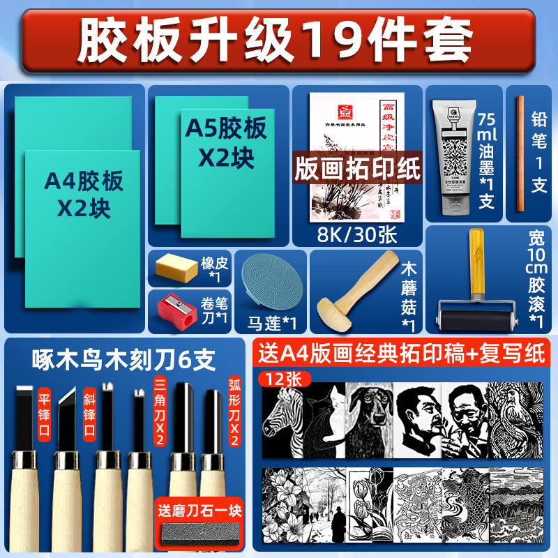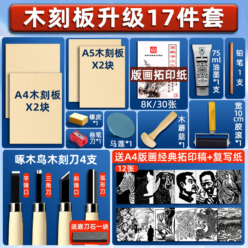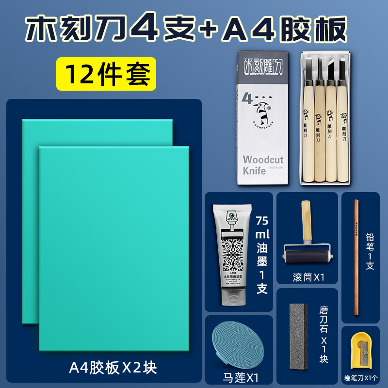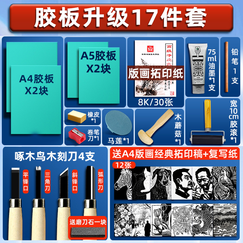 [Резиновая доска 4 блока] Инструмент печати 17 шт.-