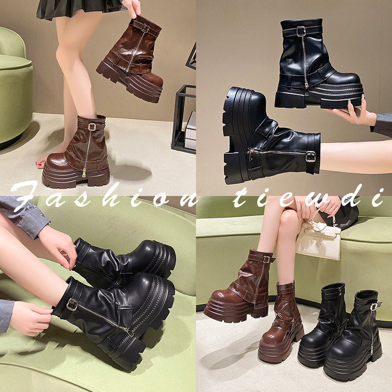 Главная страница > 10 см толстые сапоги для брюк женский 2024 осень и зима новый маленький человек, увеличенные кексы, западные короткие сапоги, застежки-молнии, сапоги Martin
