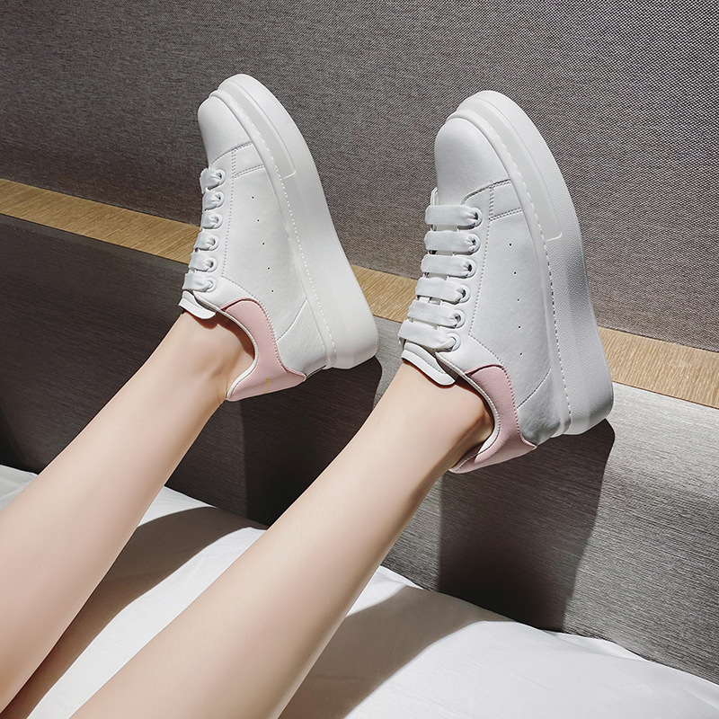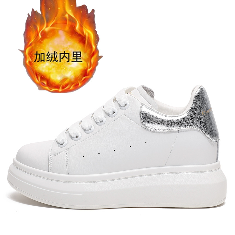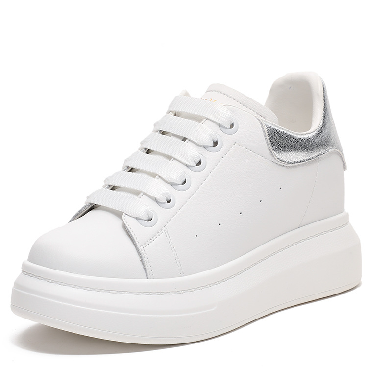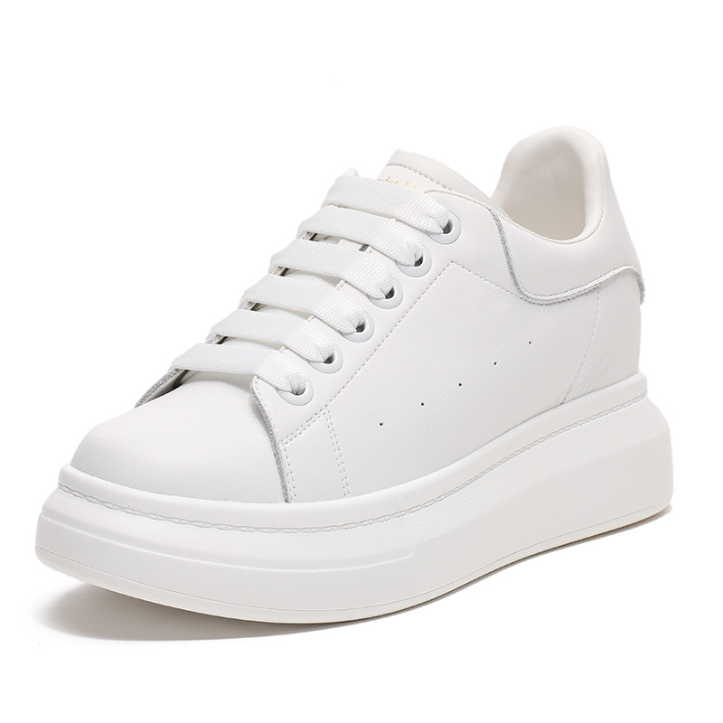 Главная страница > Женские кроссовки из натуральной кожи на толстой подошве, увеличивающие рост, 8 см, в стиле McQueen, повседневные, белые, новинка 2025 года
