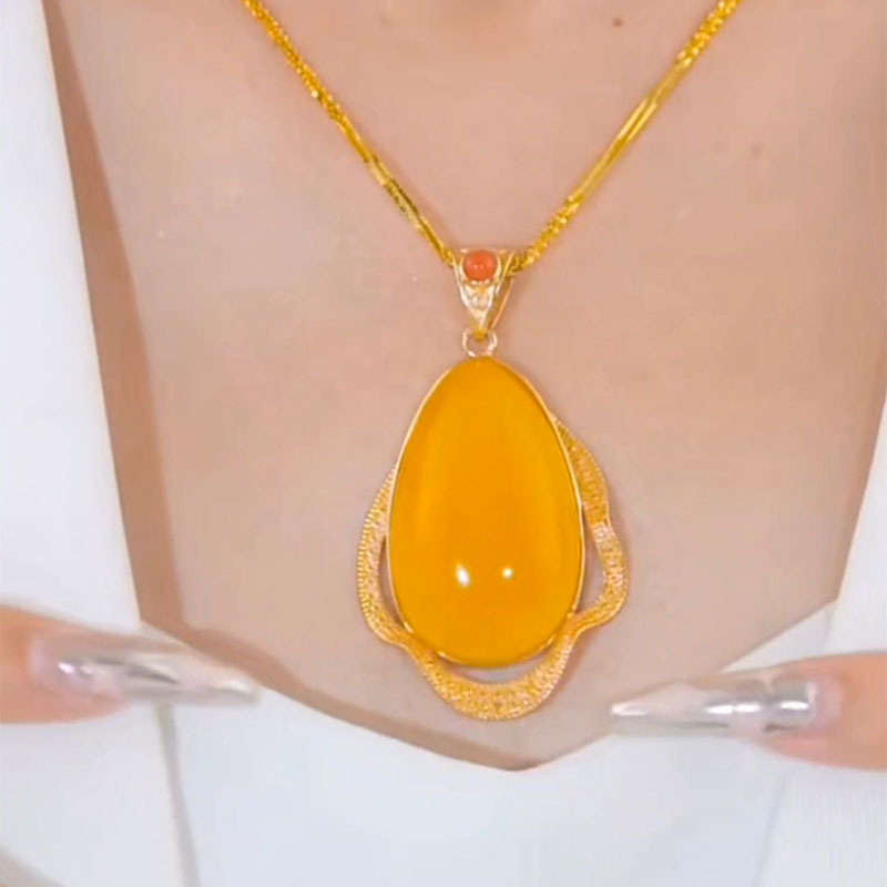 Главная страница > Новый стиль капли воды имитация агата кулон ожерелье лед желтый медовый воск ретро ключицы цепи высокого класса темперамент элегантный праздничный подарок