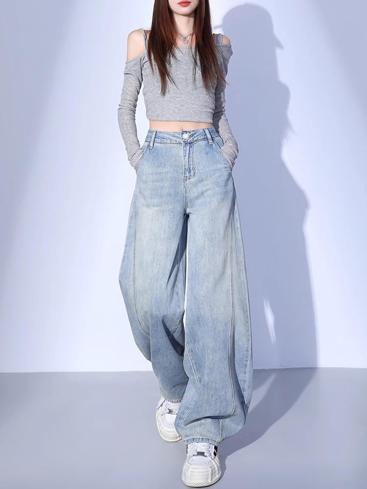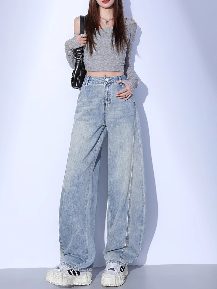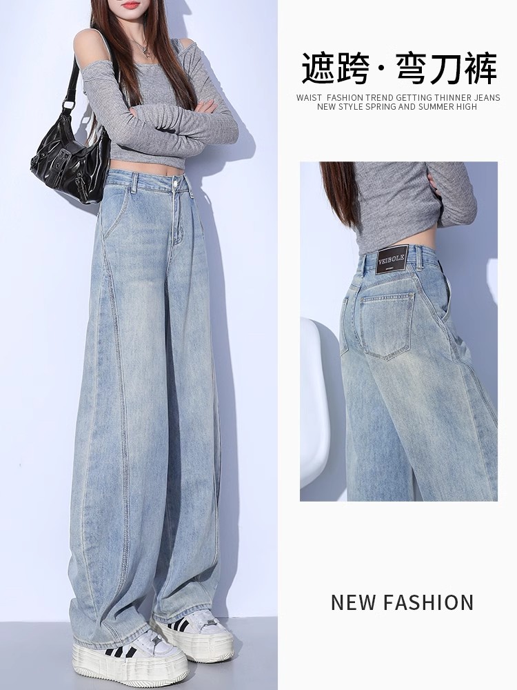 Главная страница > Светлые брюки Scimitar в стиле ретро, джинсы, женские весенние 2023, новые узкие узкие брюки с высокой талией, прямые брюки-бананы с серпом