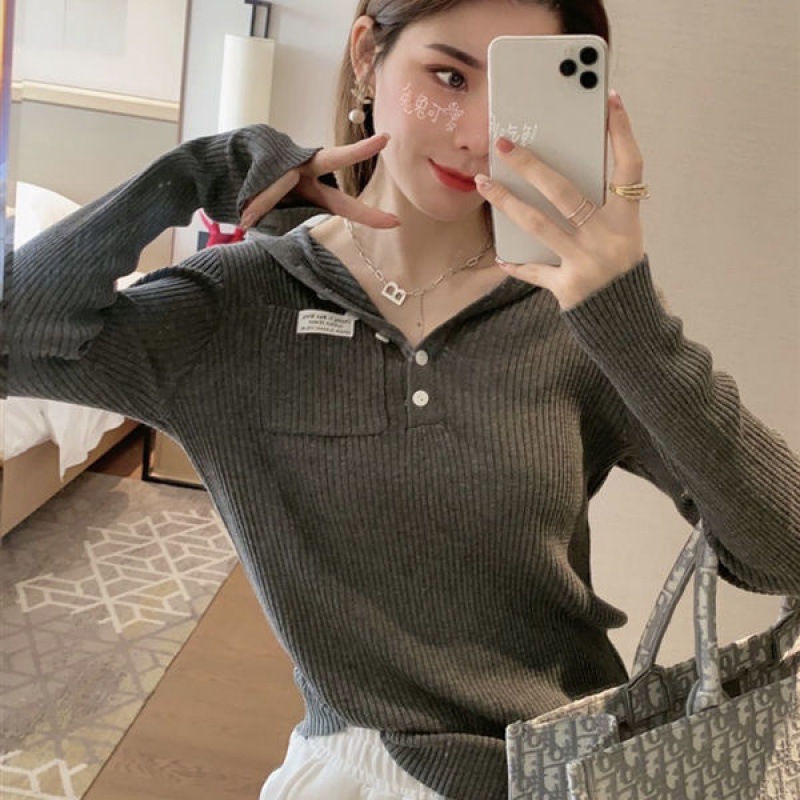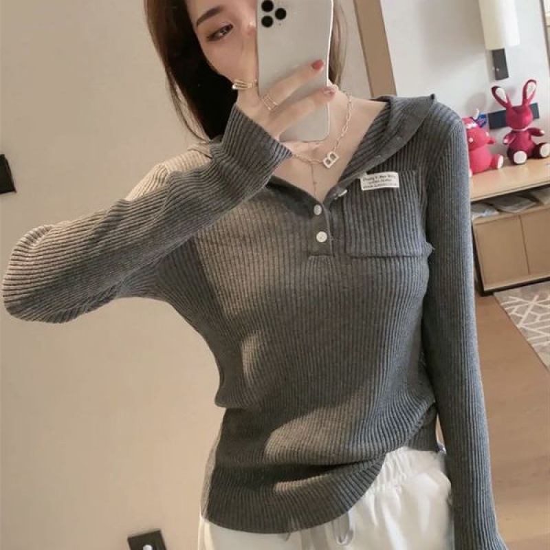 Главная страница > Базовая рубашка с капюшоном Design Sense Niche, Женская Осенняя Новая Элегантная приталенная Приталенная футболка с длинными рукавами, модная