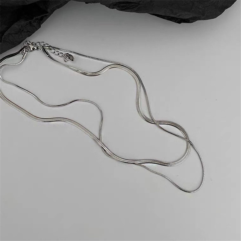 Главная страница > Двухслойное колье из титановой стали с цепочкой в виде змеиной кости, нишевый дизайн, минималистичный стиль, цепочка на ключицу, аксессуары в стиле хип-хоп, легкий люксовый стиль.
