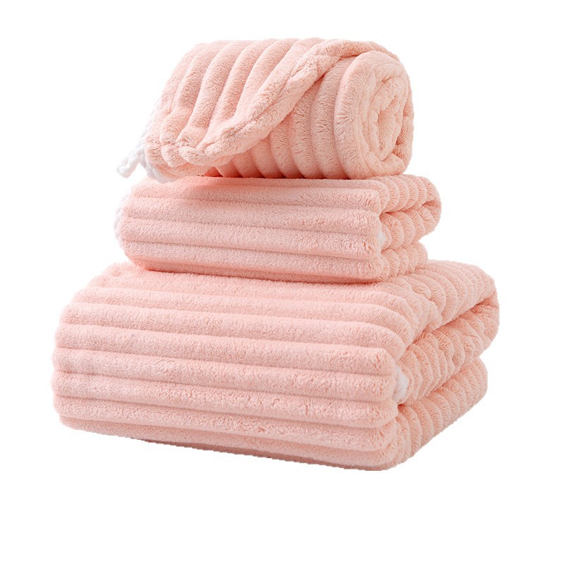 Главная страница > Комплект из трех предметов: полотенце из кораллового флиса, банное полотенце, шапочка для сушки волос, полотенце из вельвета в полоску «конфетти», полотенце из кораллового флиса в полоску, очень мягкое и впитывающее полотенце.