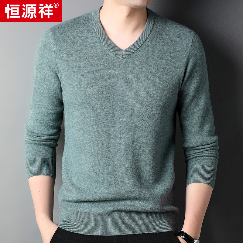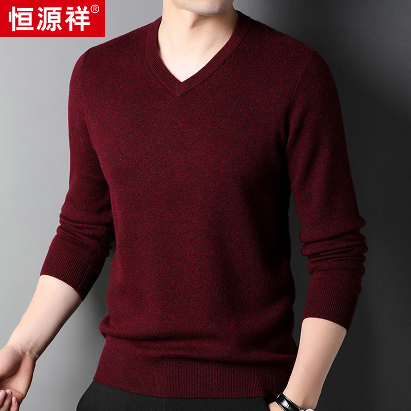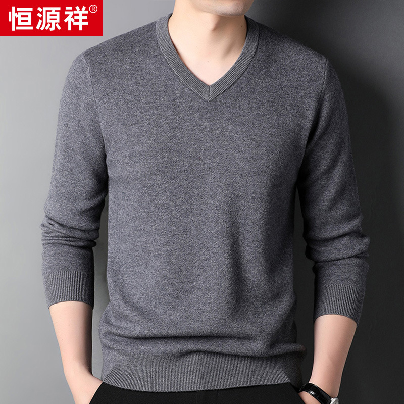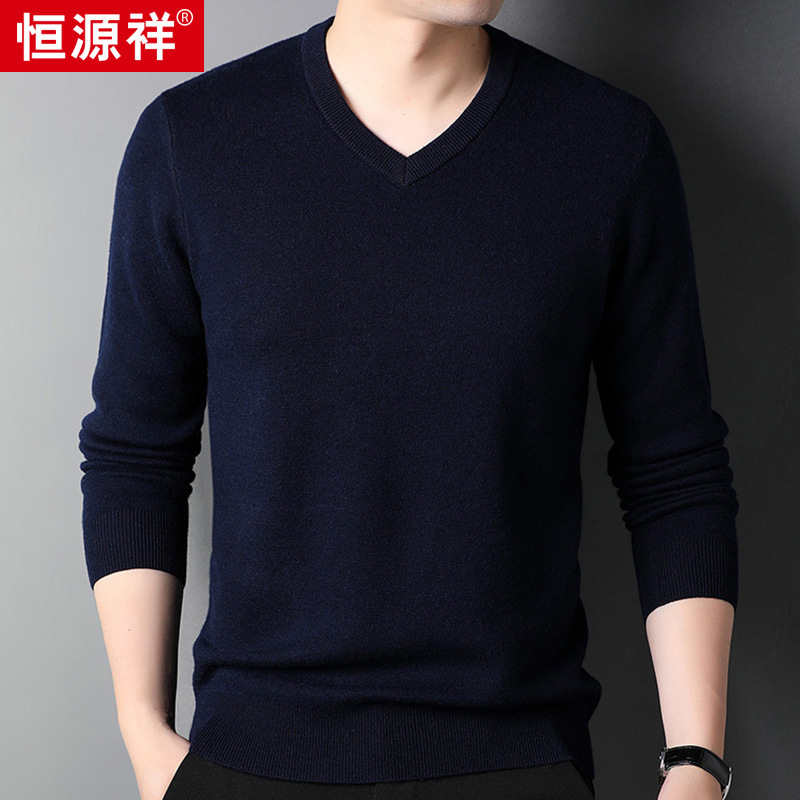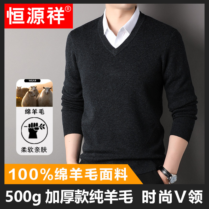 Главная страница > Hengyuanxiang 500g толстый 100% чистый шерстяной свитер мужской куриный воротник 2023 осень-зима новый V-образный свитер мужской