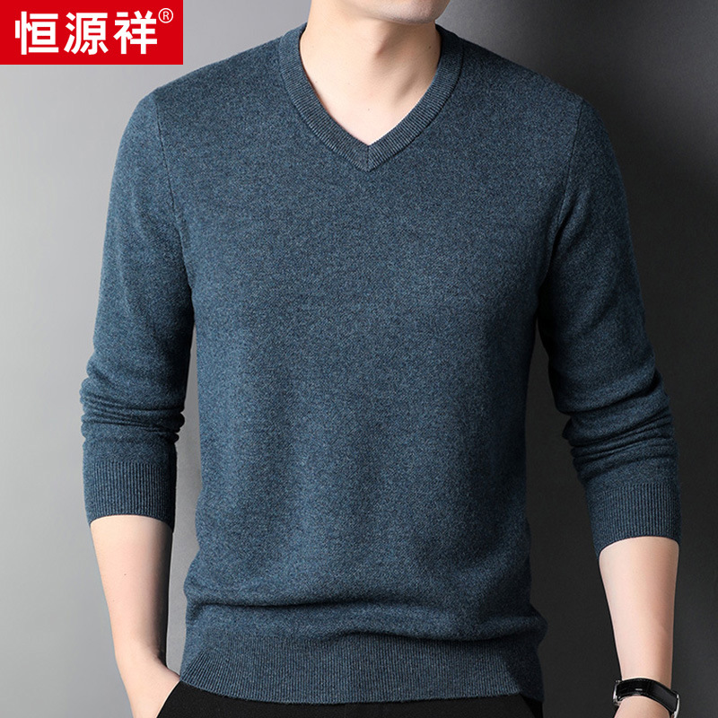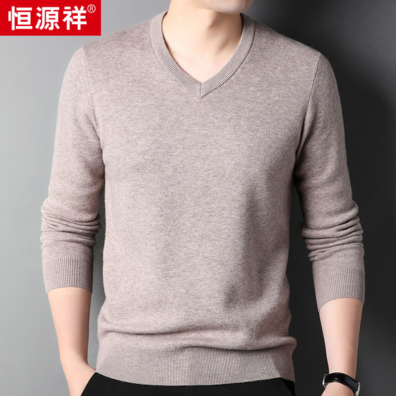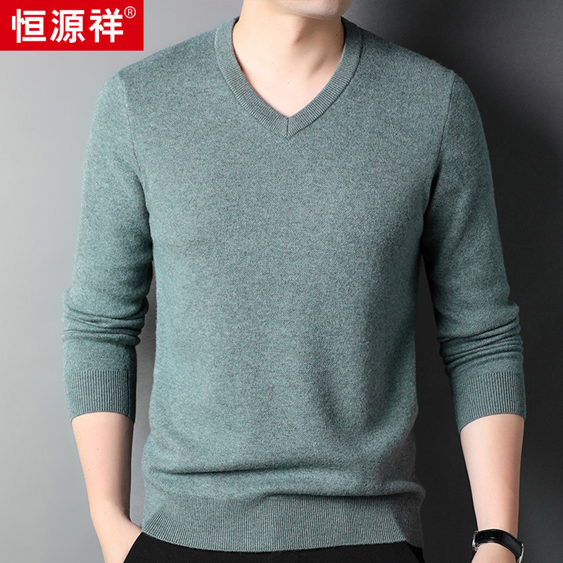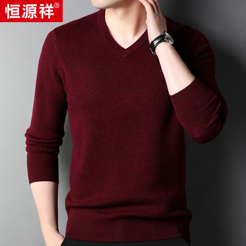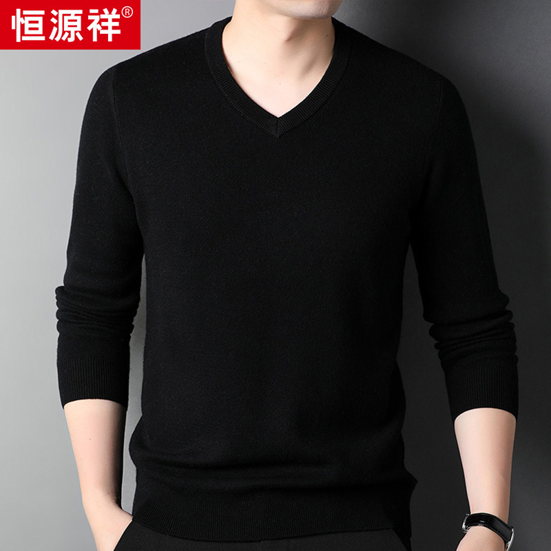 Главная страница > Hengyuanxiang 500g толстый 100% чистый шерстяной свитер мужской куриный воротник 2023 осень-зима новый V-образный свитер мужской