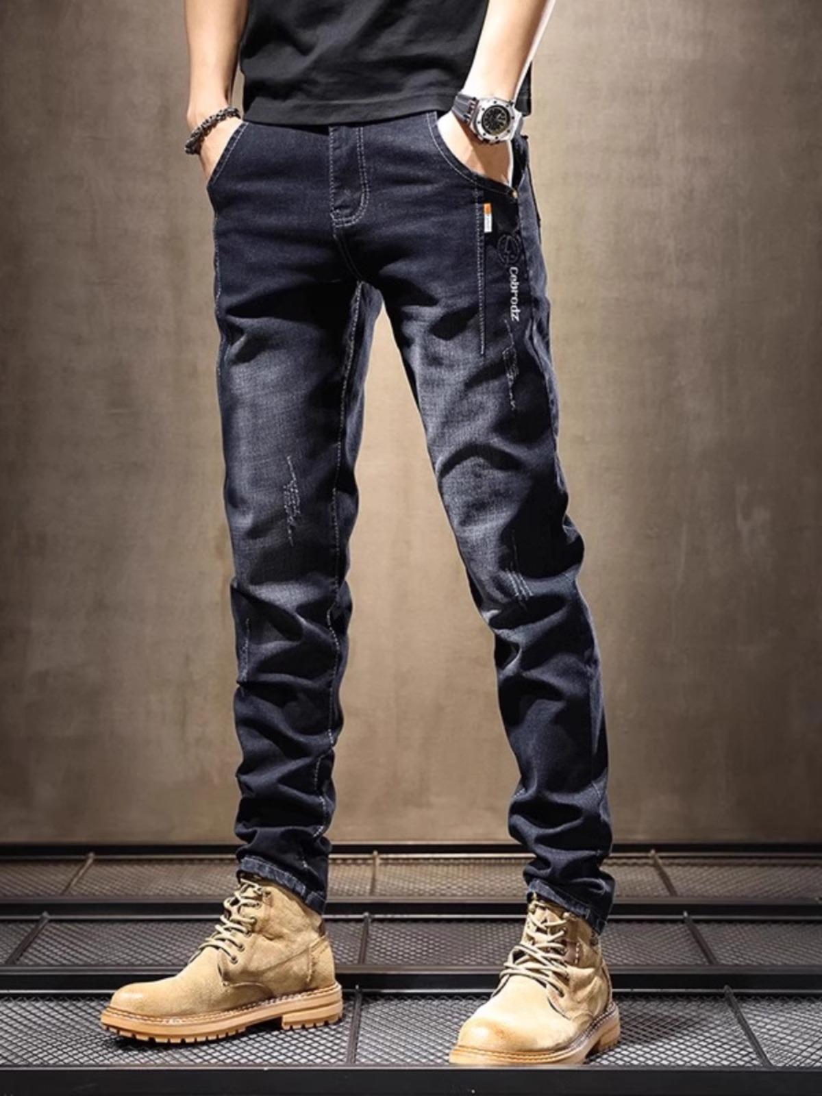 Главная страница > 2025 новые черные серые джинсы мужские стройные прямые приливные штаны эластичные штаны повседневные мужские бритые брюки