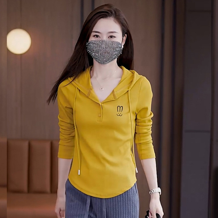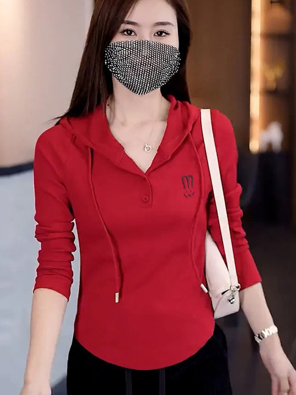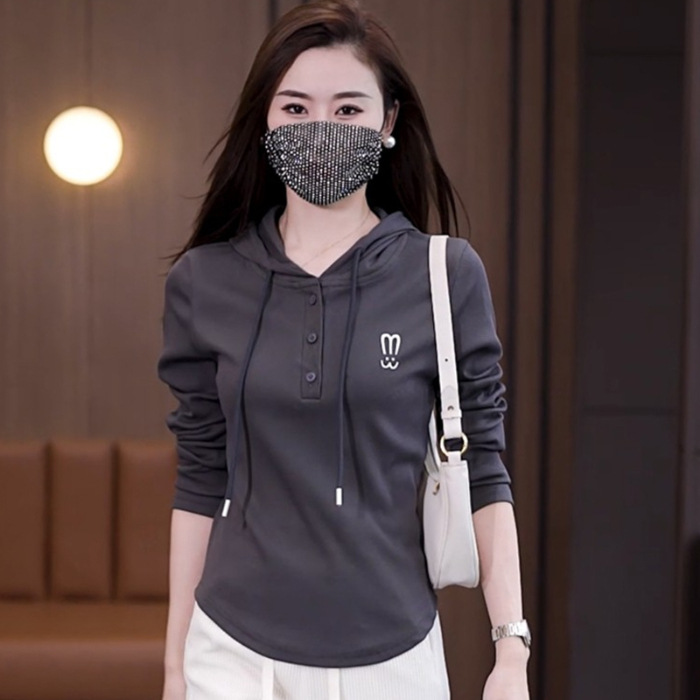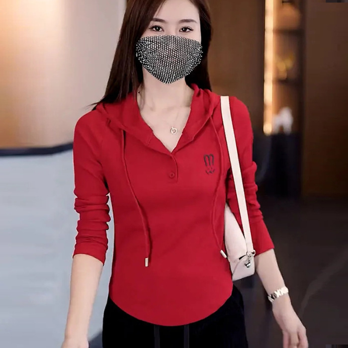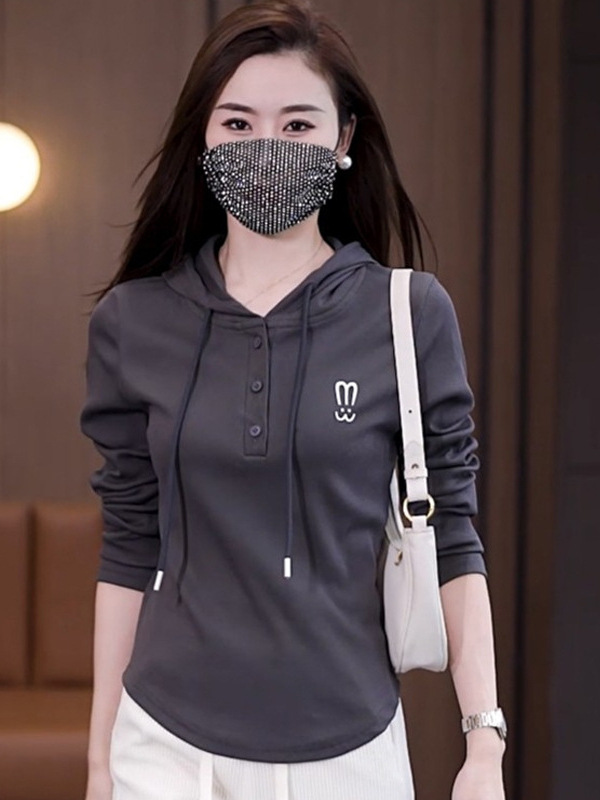 Главная страница > Оптовая весна и осень с капюшоном темперамент свободный с длинными рукавами 2024 новый ледяной шелк с ниткой женский тонкий топ-футболка