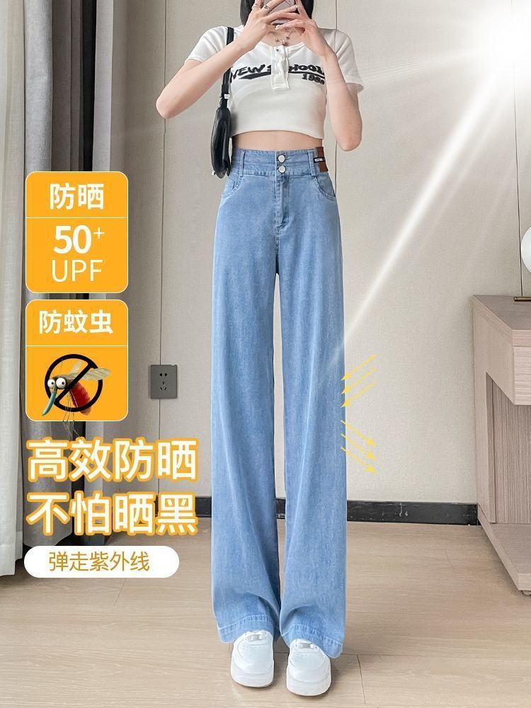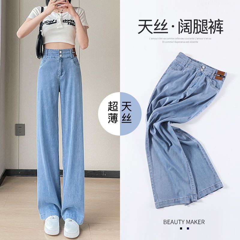 Главная страница > Джинсы Tencel, женские летние тонкие 2024, новые универсальные прямые брюки с высокой талией длиной до пола, узкие широкие брюки из ледяного шелка