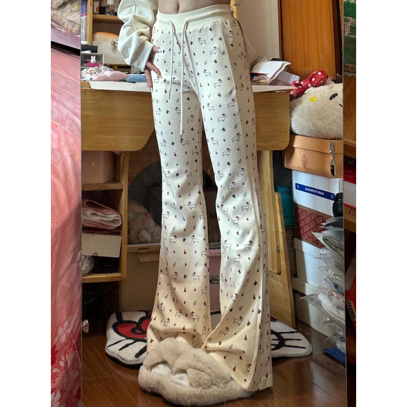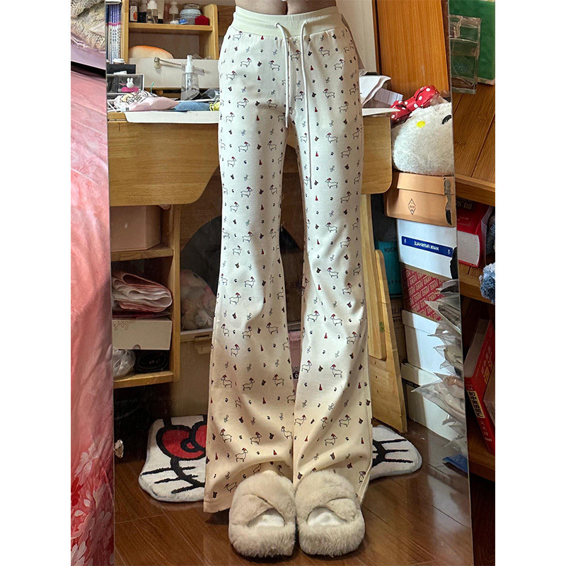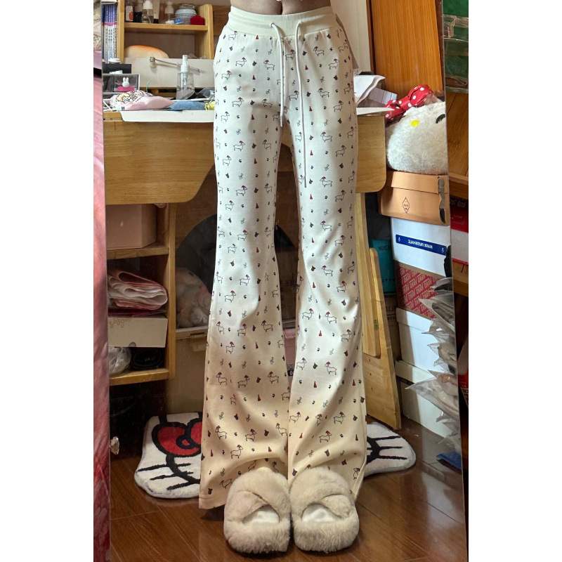 Симпатичные щенки с принтом микро-радо женские летние 2025 новые узкие брюки с высокой талией и дикие ленивые спортивные повседневные брюки
