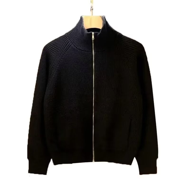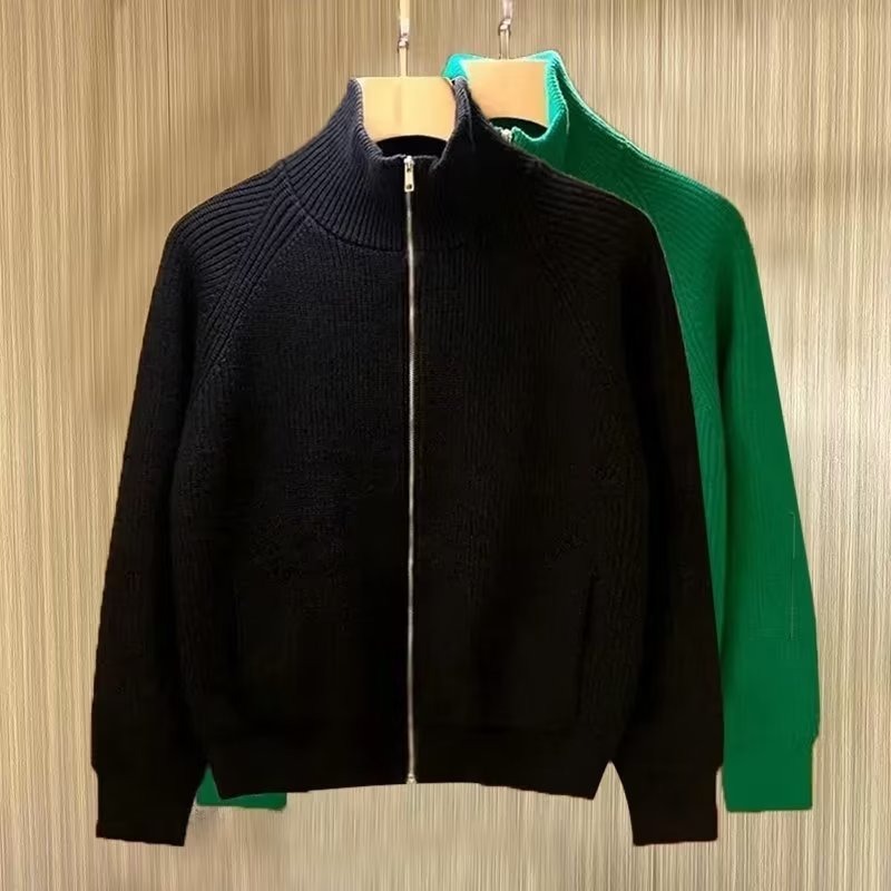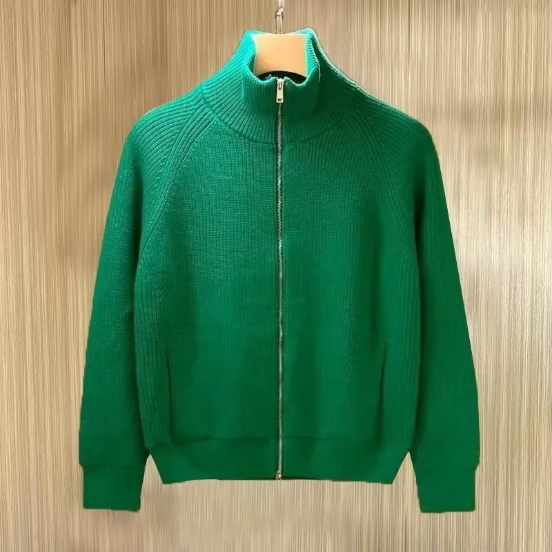 Главная страница > Европейский и американский Простой Высококачественный вязаный кардиган с зеленым воротником на молнии, мужской зимний утепленный свитер с флисовой подкладкой, куртка-свитер для мужчин