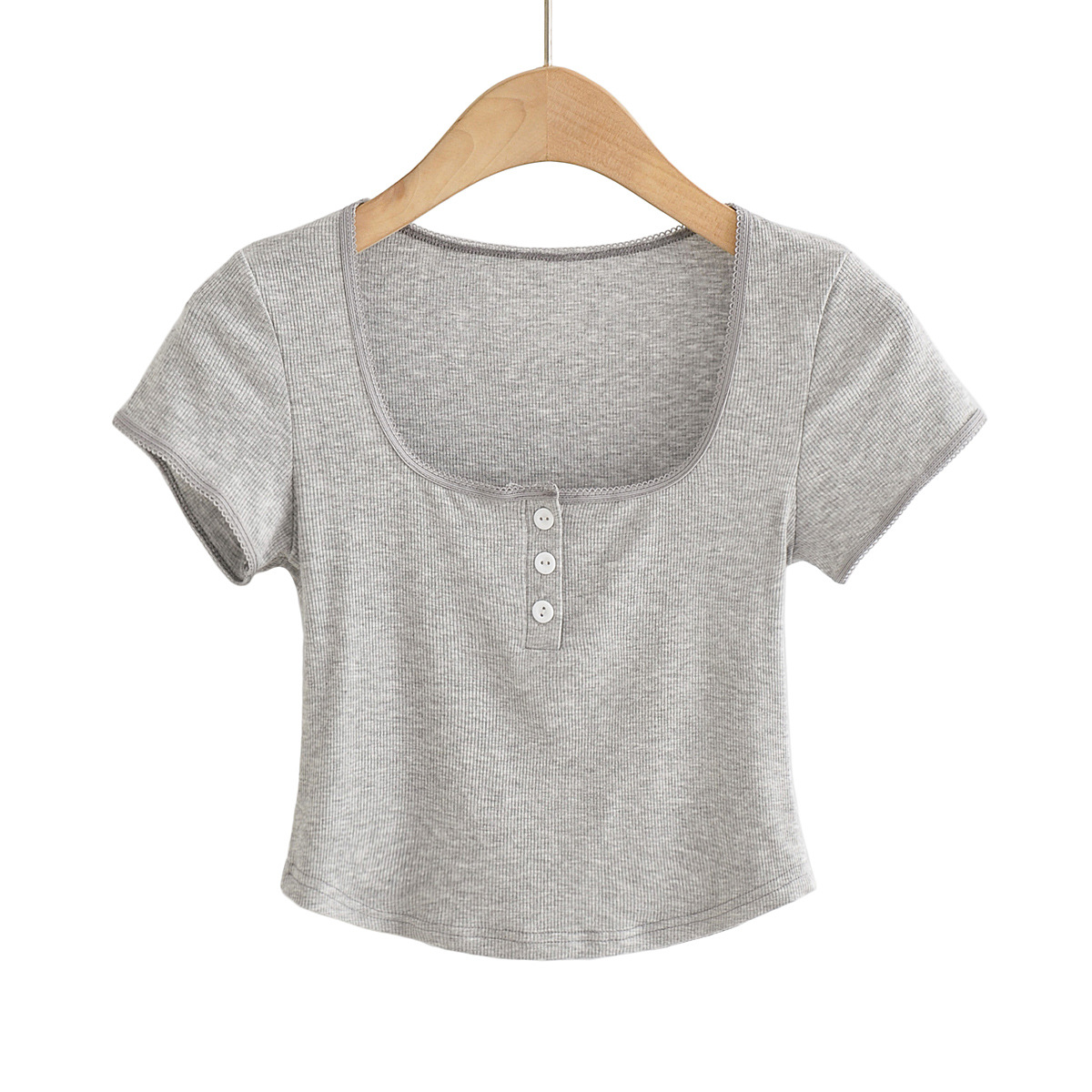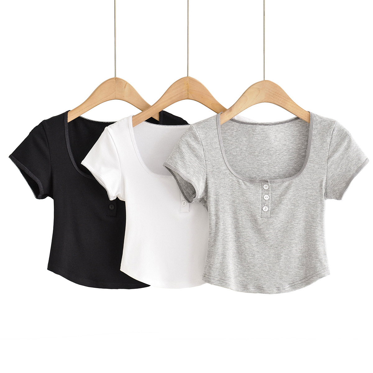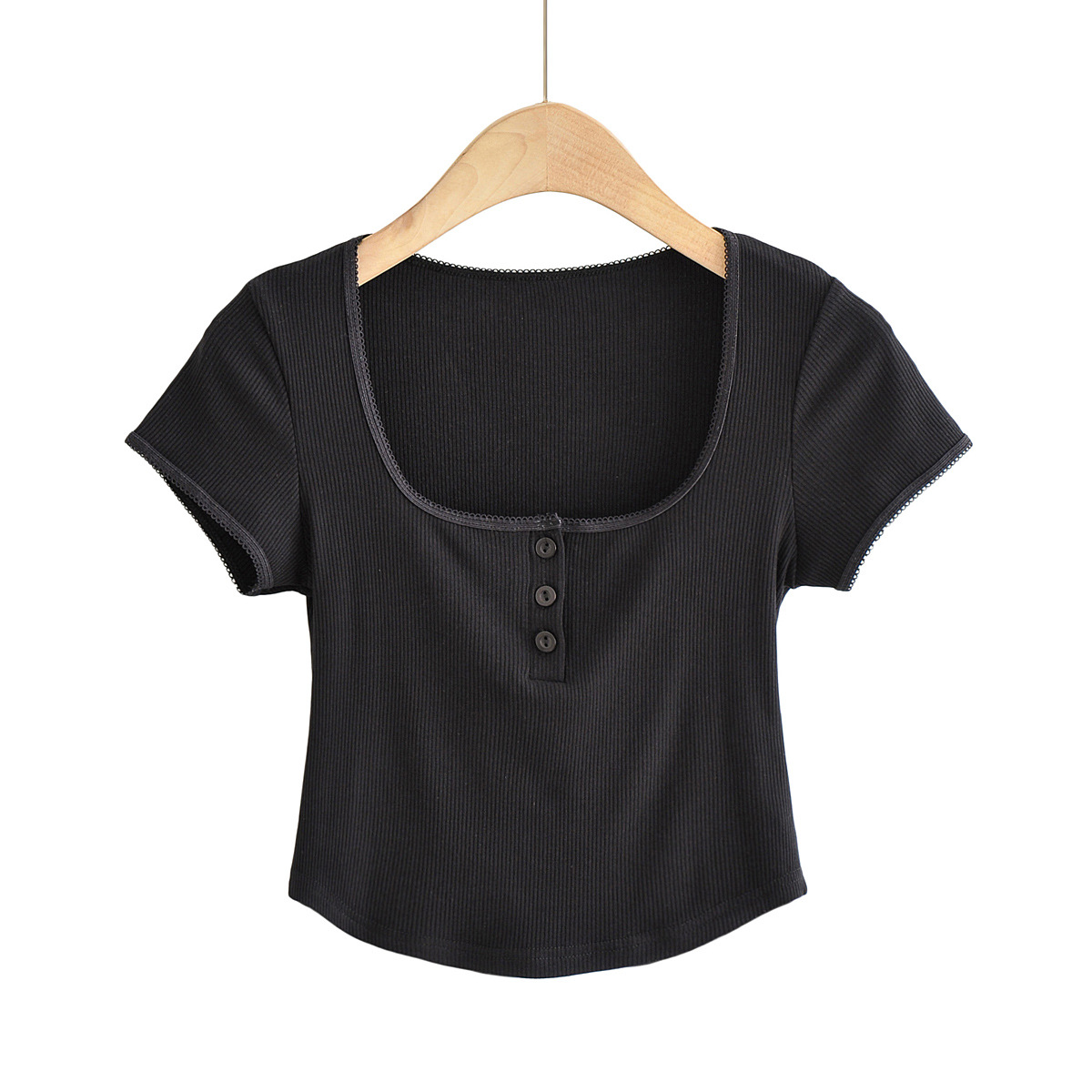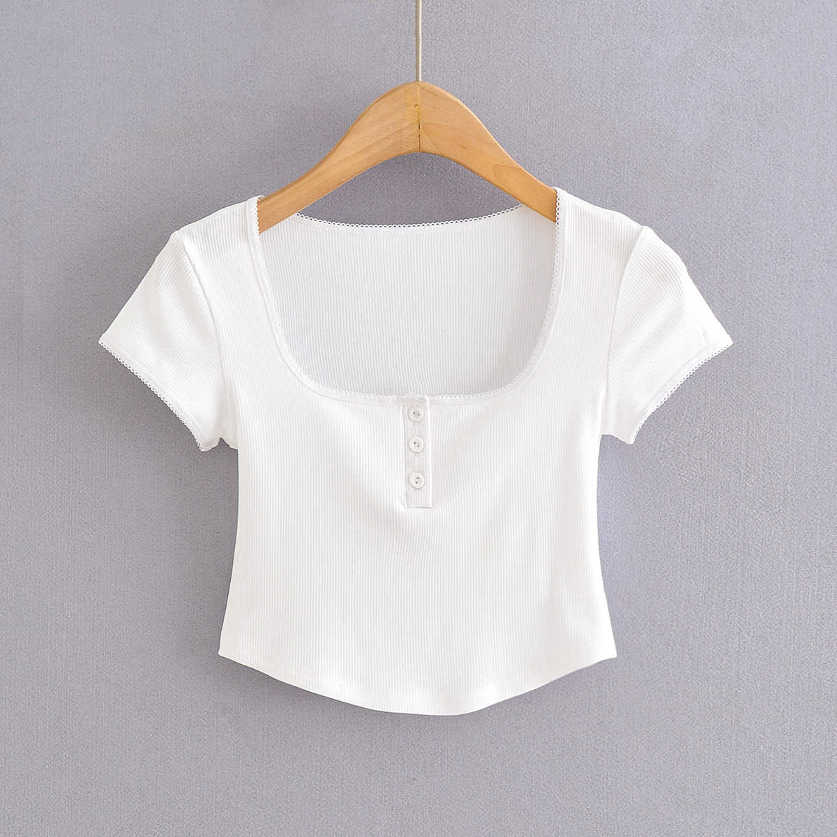 Главная страница > 2021 летняя новая Европейская и американская сексуальная лакированная футболка с короткими рукавами, женский модный приталенный короткий топ с квадратным вырезом и пупком