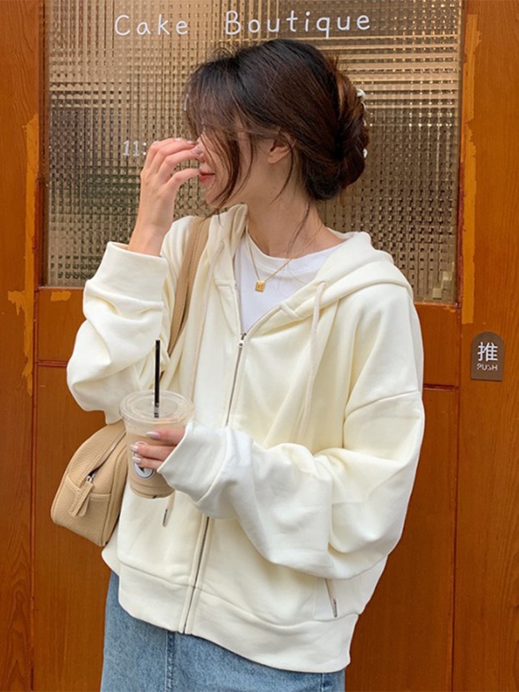 Главная страница > Молочный свитер с капюшоном женский весна и осень 2023 новый стиль оверсайз повседневное пальто для маленьких девочек