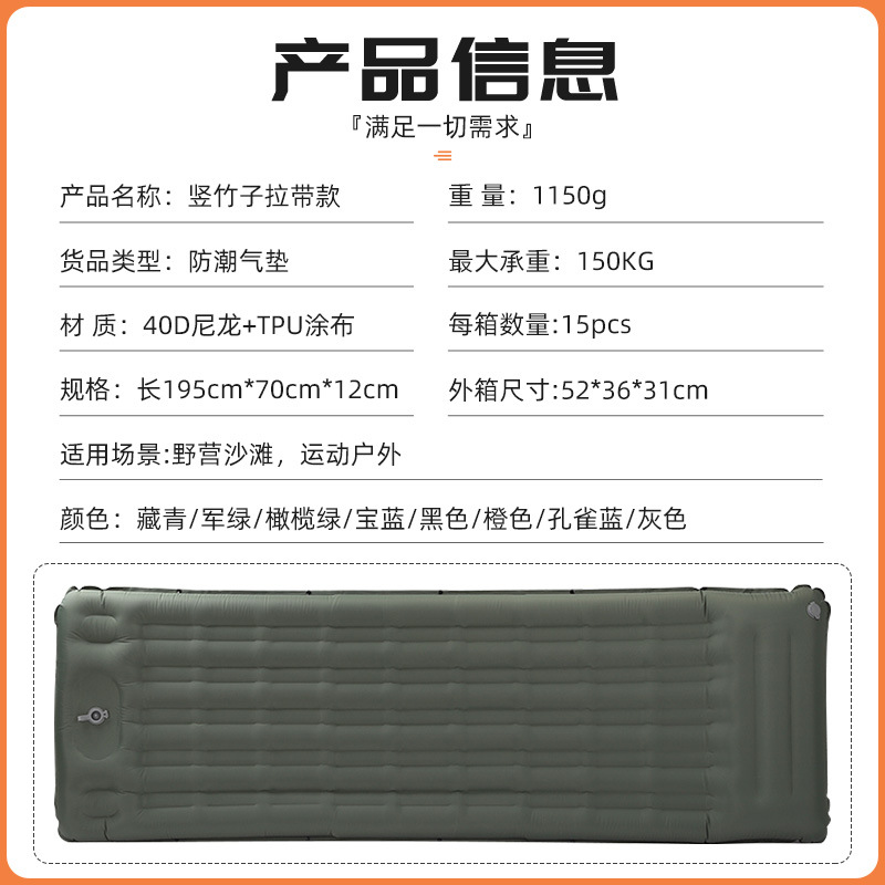 Оптовая продажа с фабрики открытый надувной матрас нейлоновый ремень надувной матрас полевая палатка кемпинг надувной спальный коврик