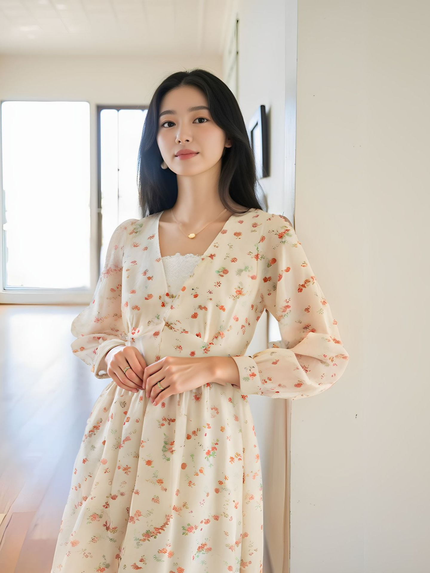 Главная страница > 130-320 фунтов большого размера французское платье с цветочным V-образным вырезом
