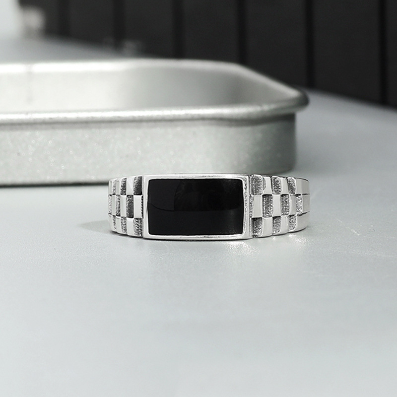 Главная страница > Кольцо в шахматную клетку Мужская мода холодный ветер тренд индивидуальное мужское одиночное Кольцо черное кольцо с каплями клея