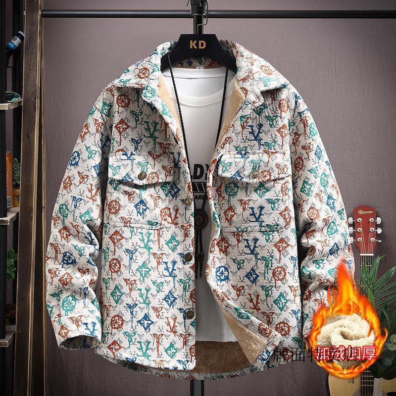 Утолщенная жаккардовая рубашка на флисовой подкладке, окрашенная в пряжу, осенне-зимняя рубашка в Корейском стиле, верхняя одежда, Мужской Свободный Топ в этническом стиле, повседневная куртка