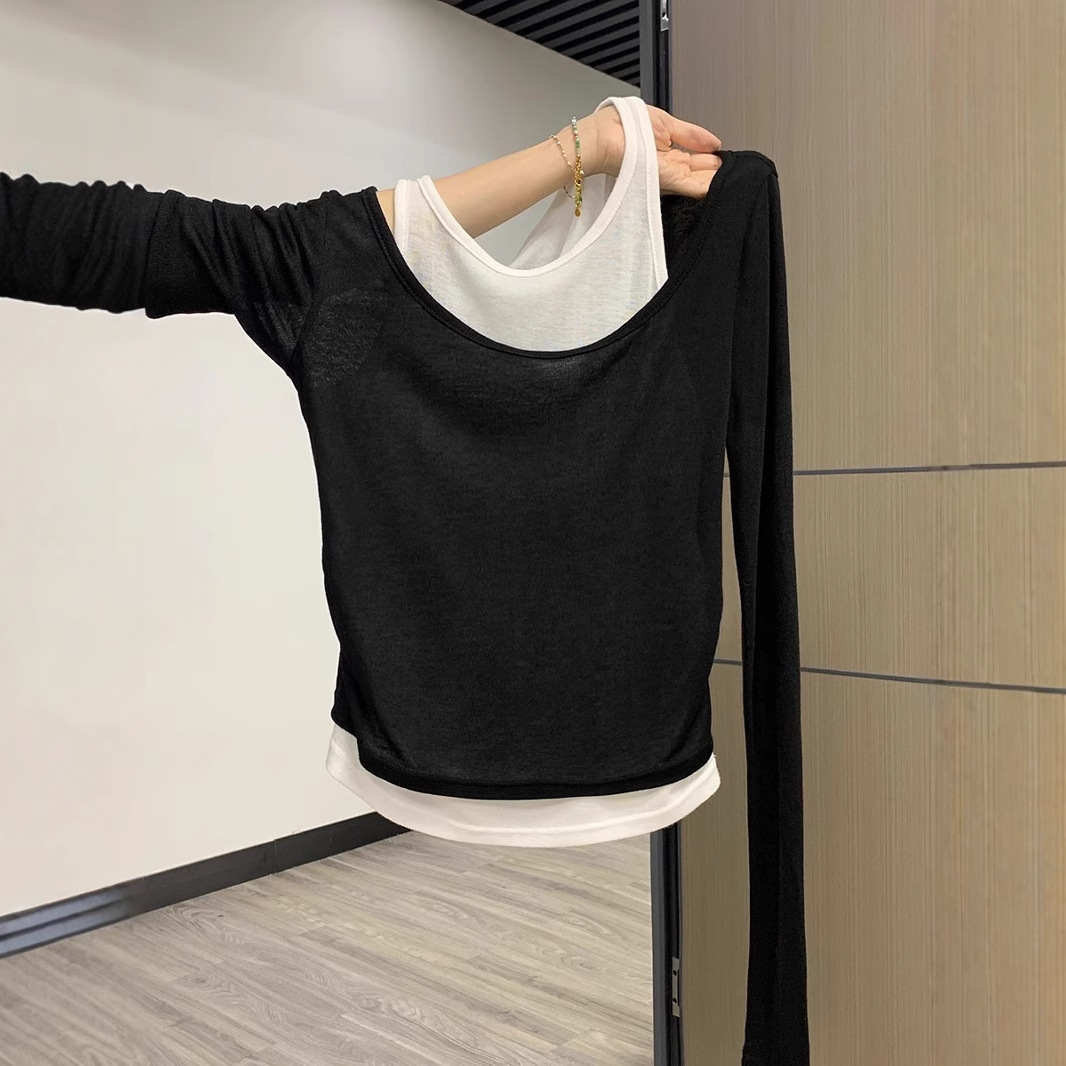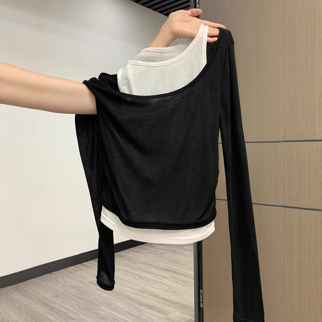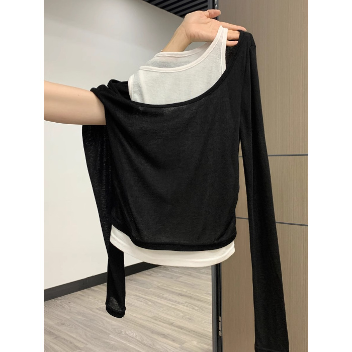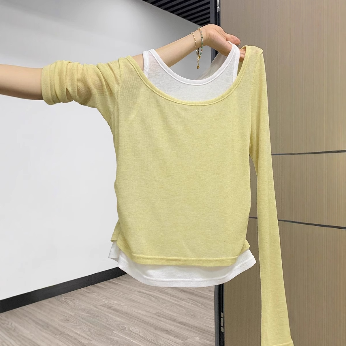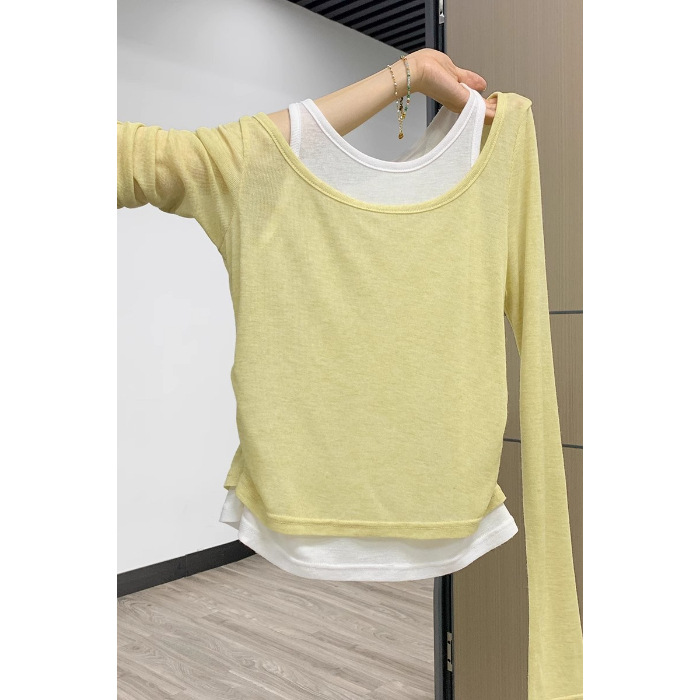 Молочно-желтая поддельная футболка с двумя длинными рукавами для женщин летом