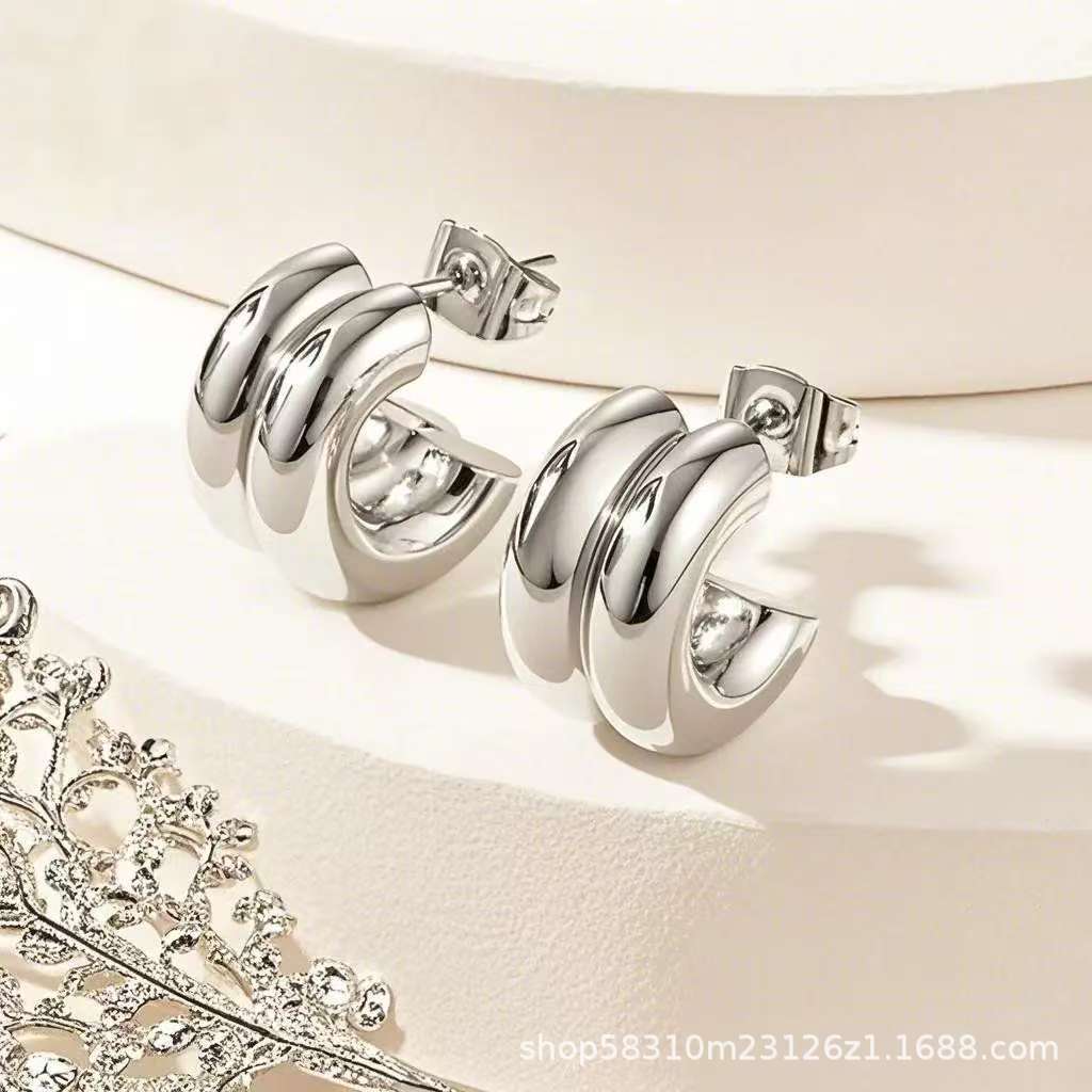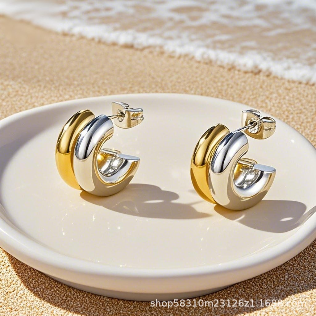 Главная страница > Ретро французский минималистичный легкий экстравагантный холодный ветер двойной C серьги из титановой стали серьги с покрытием 18K настоящего золота не выцветают аксессуары
