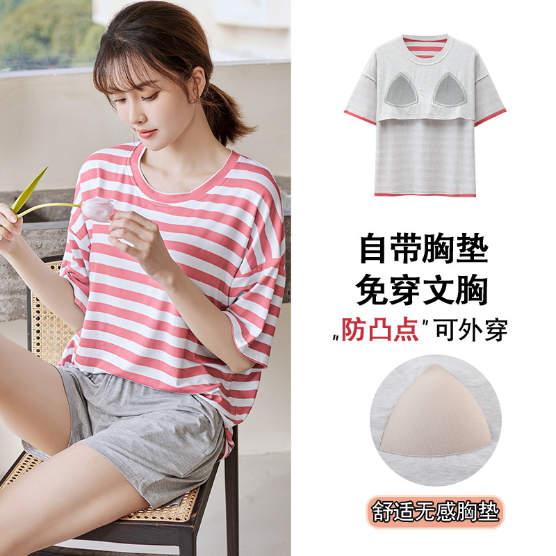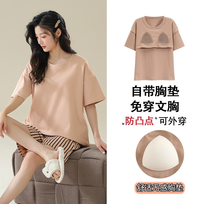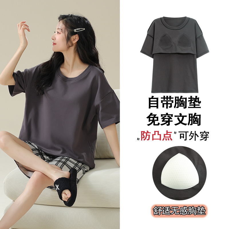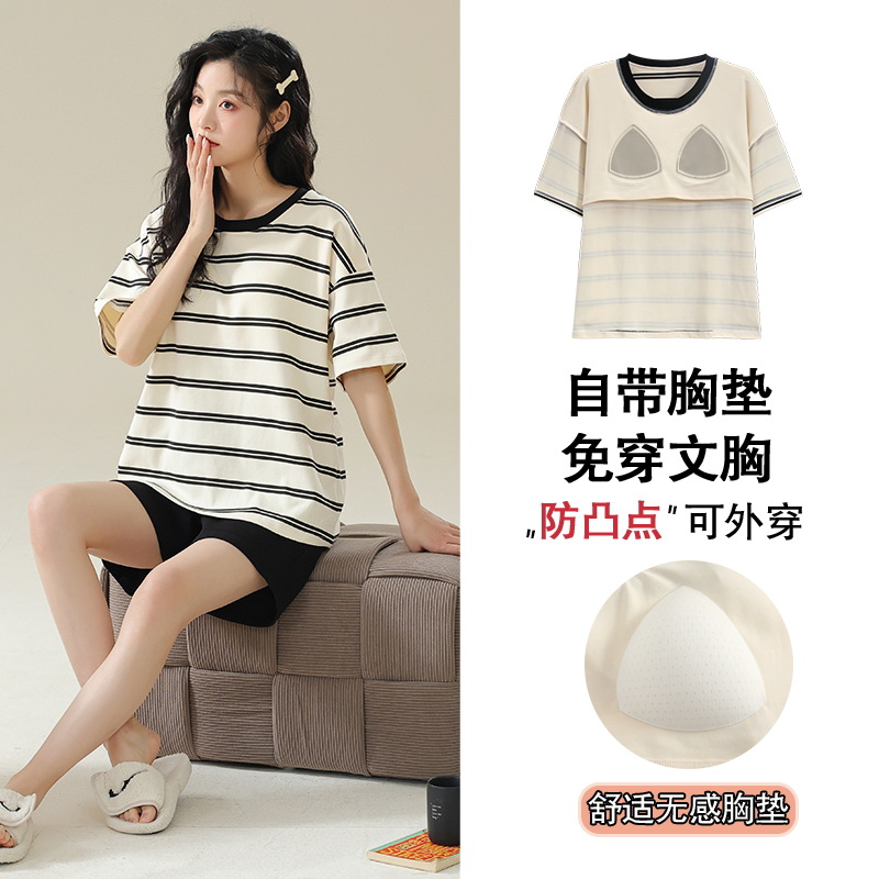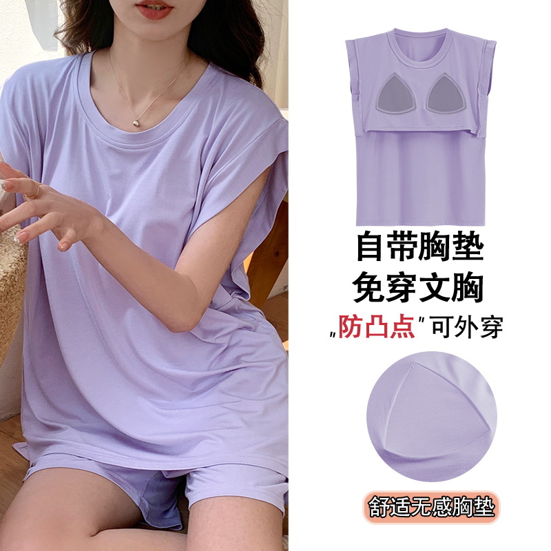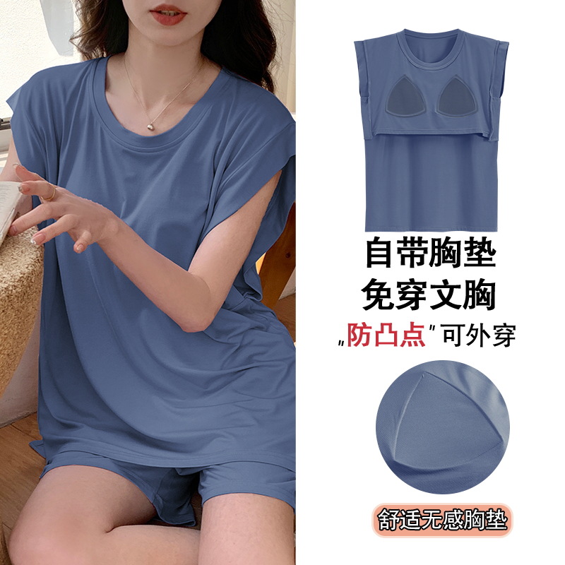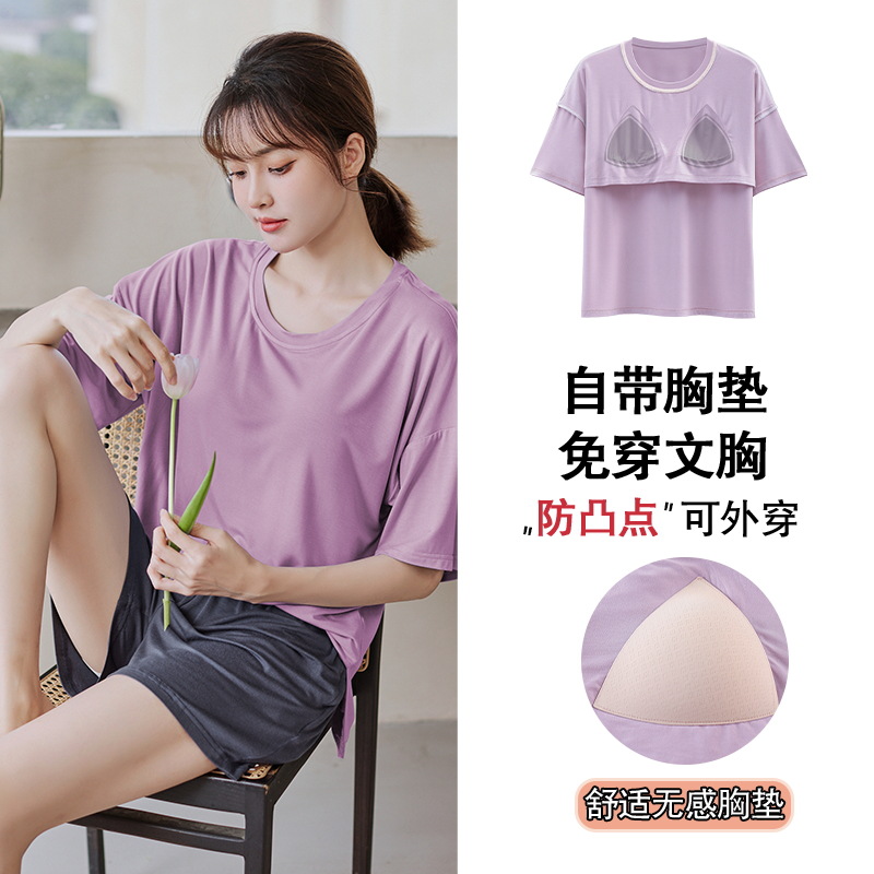 Главная страница > Женские пижамы с мягкой подкладкой из модала, новые летние шорты с короткими рукавами, тонкий стиль, можно носить на улице, повседневная домашняя одежда в простом стиле