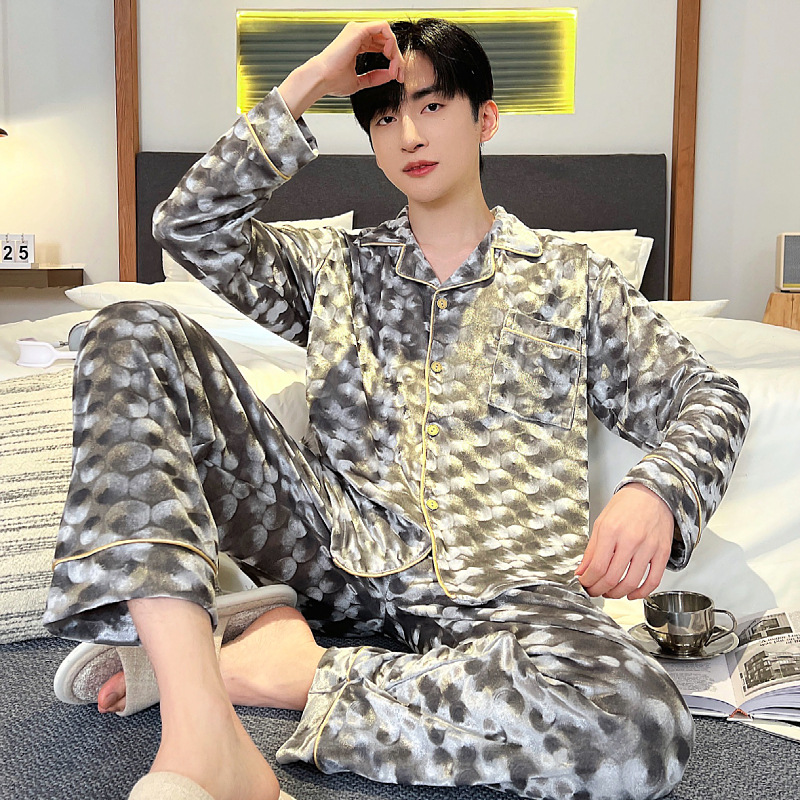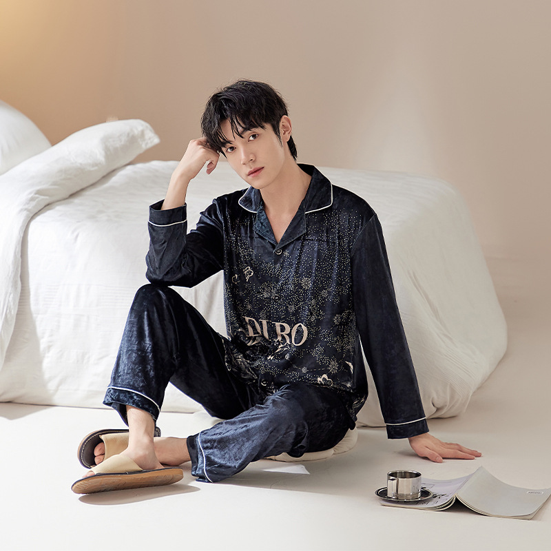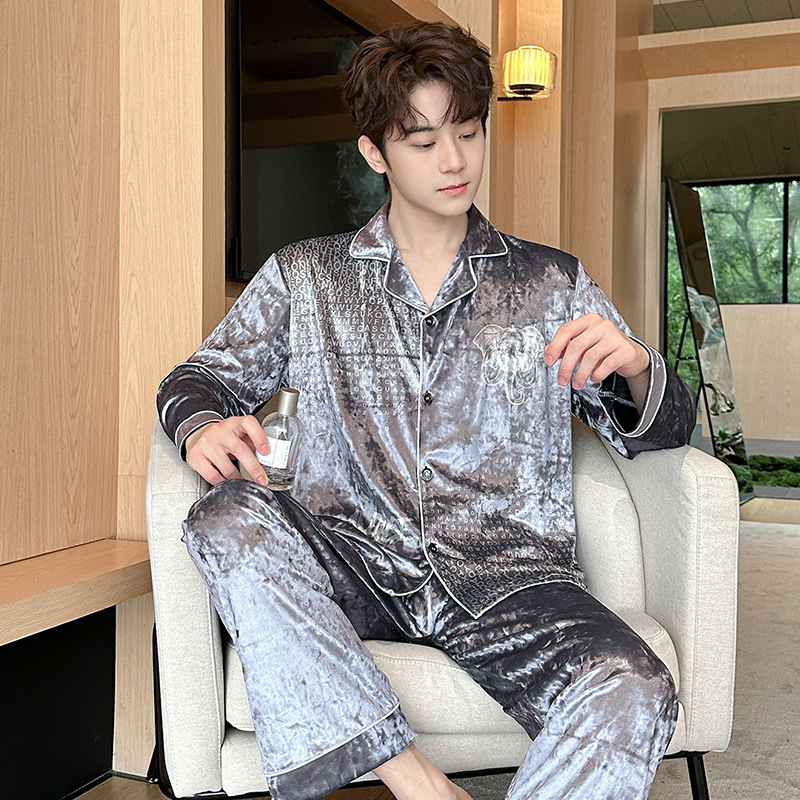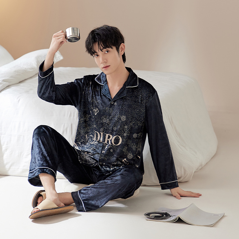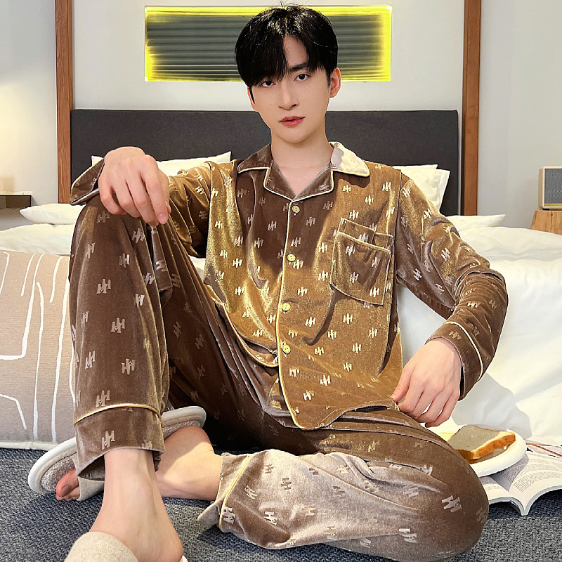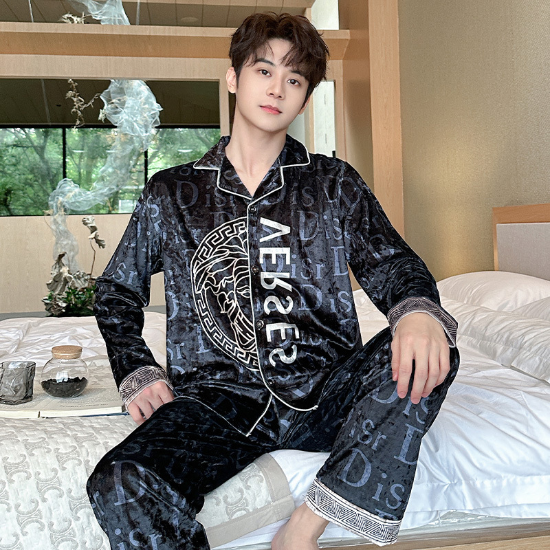 Главная страница > 2024 Алмазный бархат мужские осенние и зимние новые пижамы красивые премиум-класса золотая бархатная домашняя одежда можно носить на улице