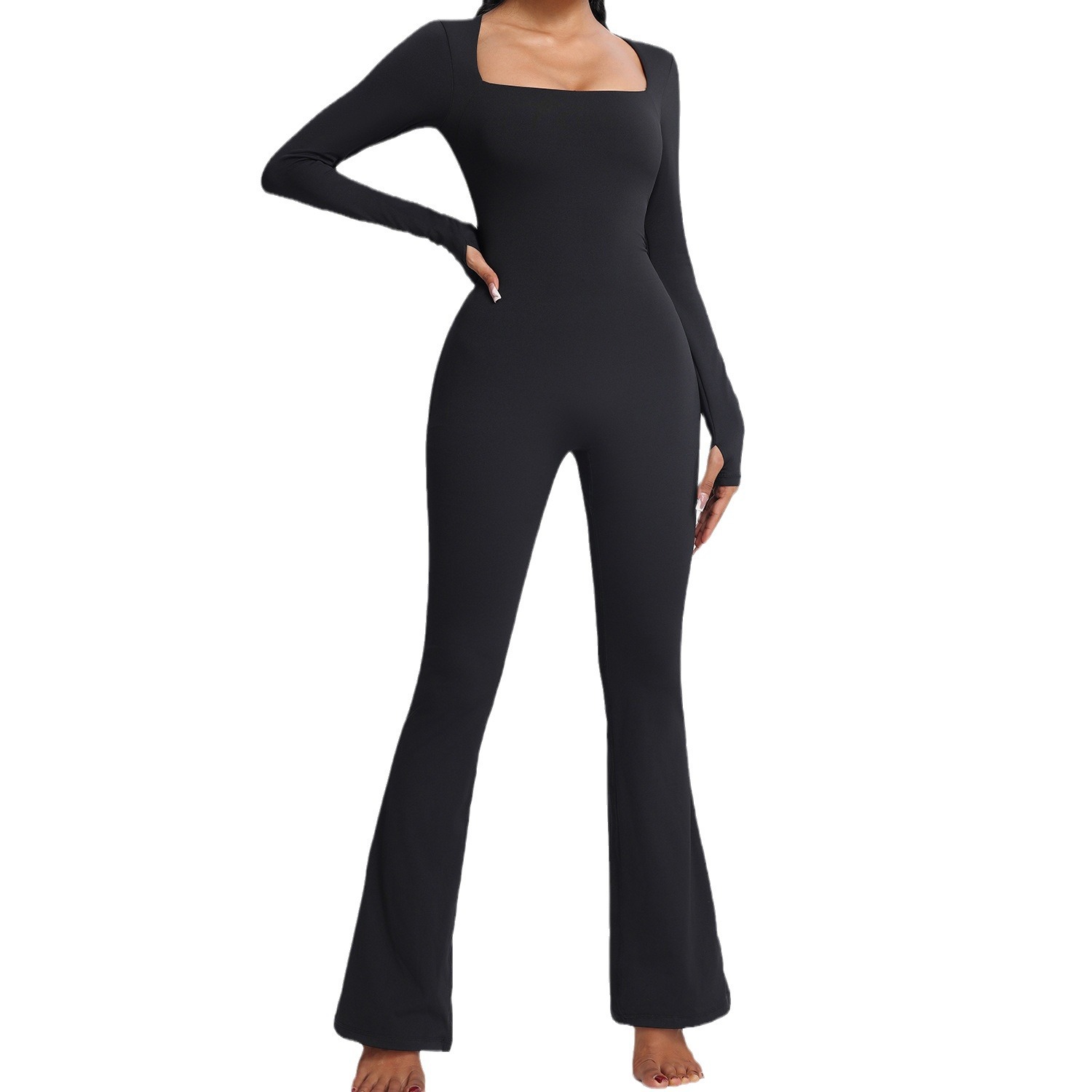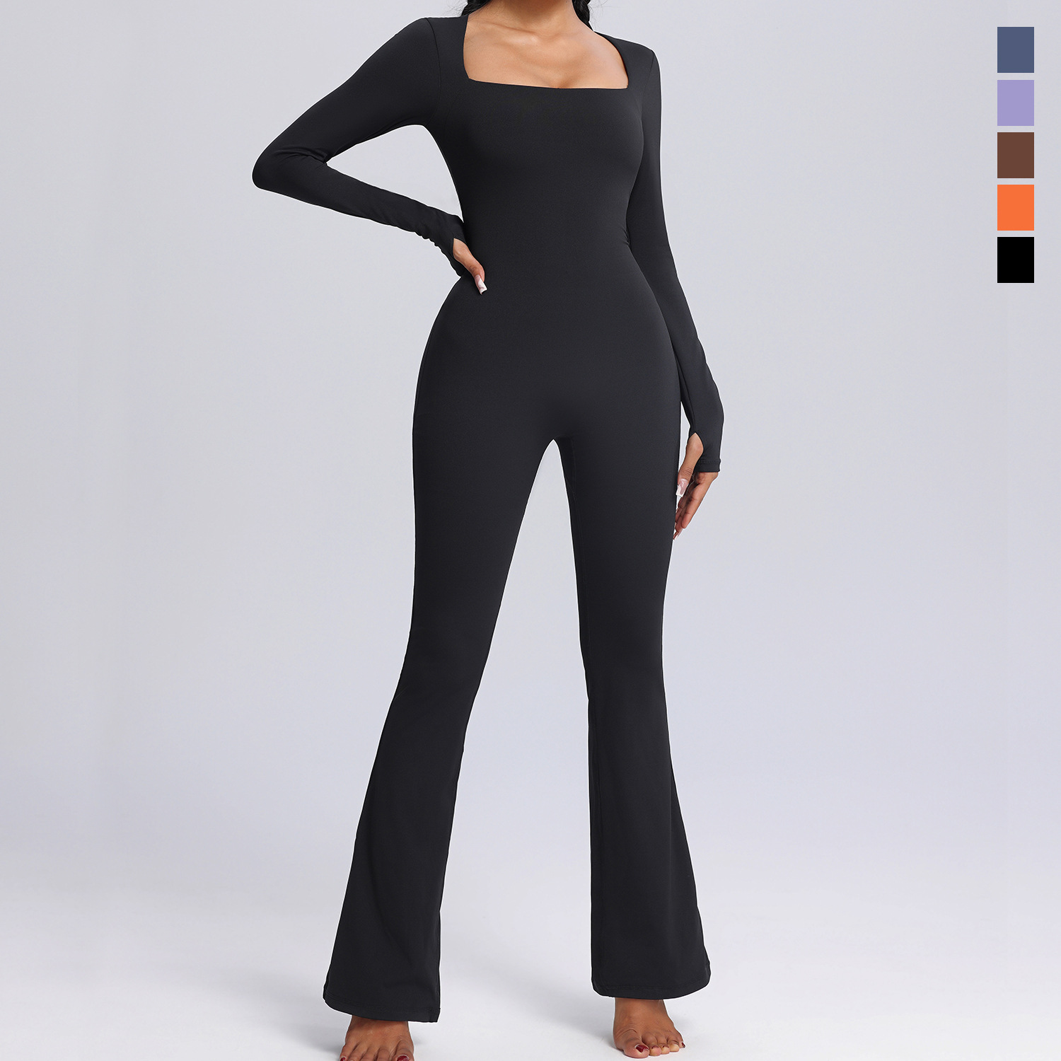 Главная страница > Женский спортивный костюм-комбинезон для йоги, длинный рукав, с нагрудной подкладкой, облегающий, премиум-класса, с широкими штанинами