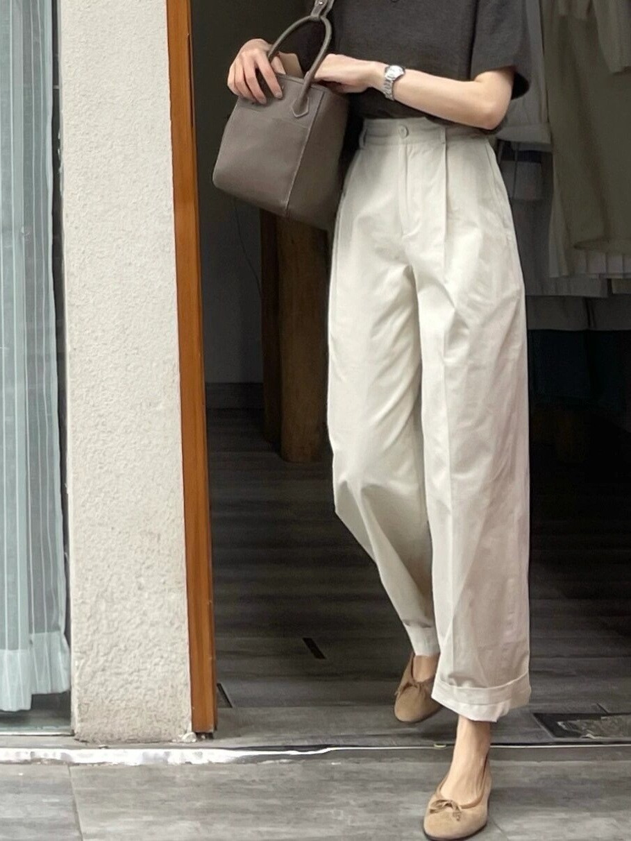 Главная страница > Белые узкие повседневные брюки женские весенние и летние тонкие французские высокие высокие чувства, широкие брюки с высокой талией, прямые брюки