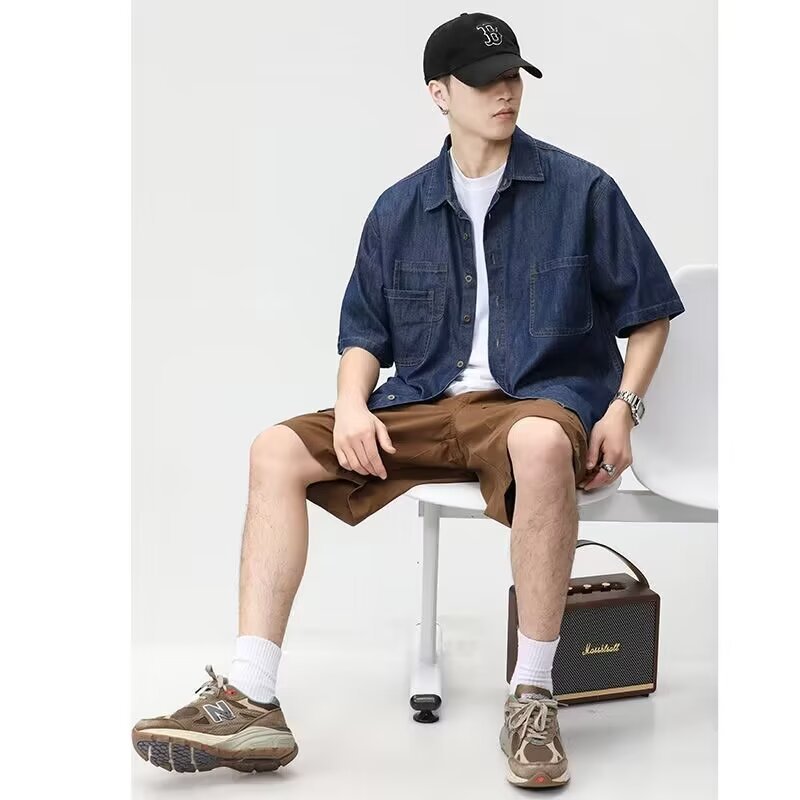 Главная страница > Джинсовая рубашка с короткими рукавами мужской летний тонкий гонконгский стиль японский стиль