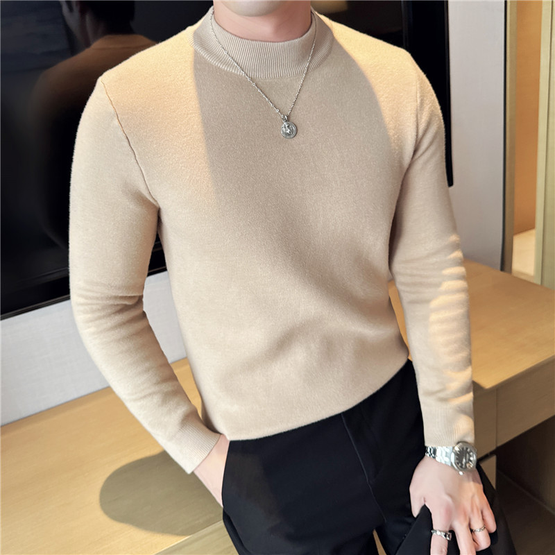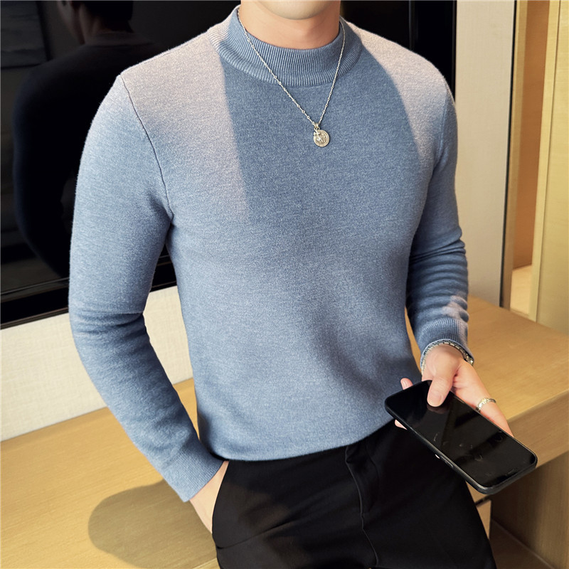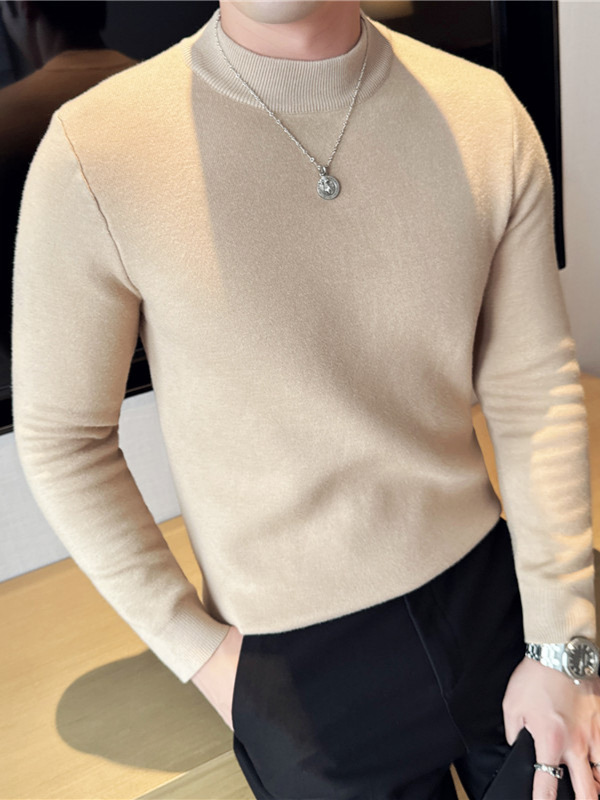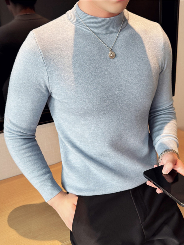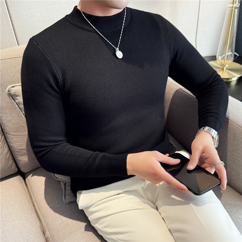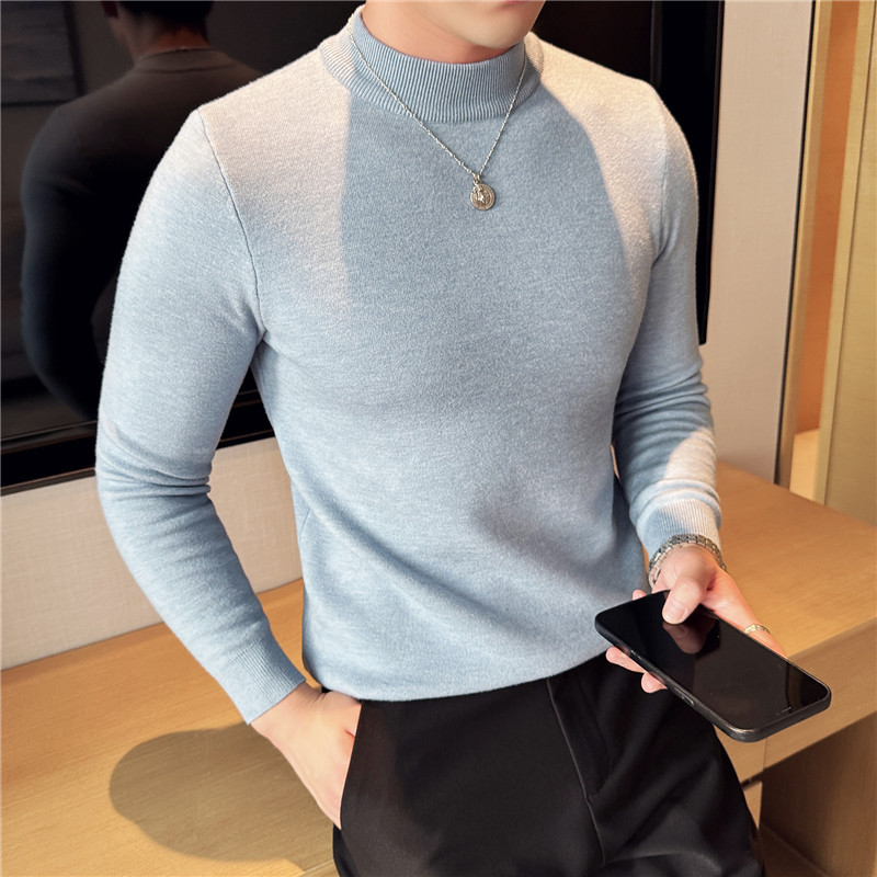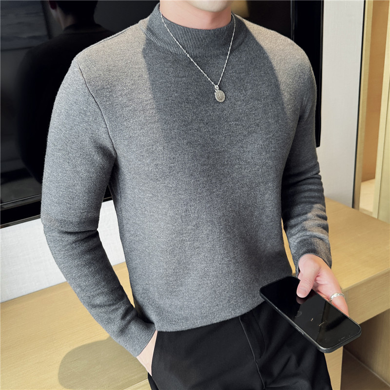Главная страница > Плюшевый свитер мужской осень-зима новый толстый теплый полувысокий воротник вязаный свитер с длинными рукавами тонкая эластичная нижняя рубашка мужской