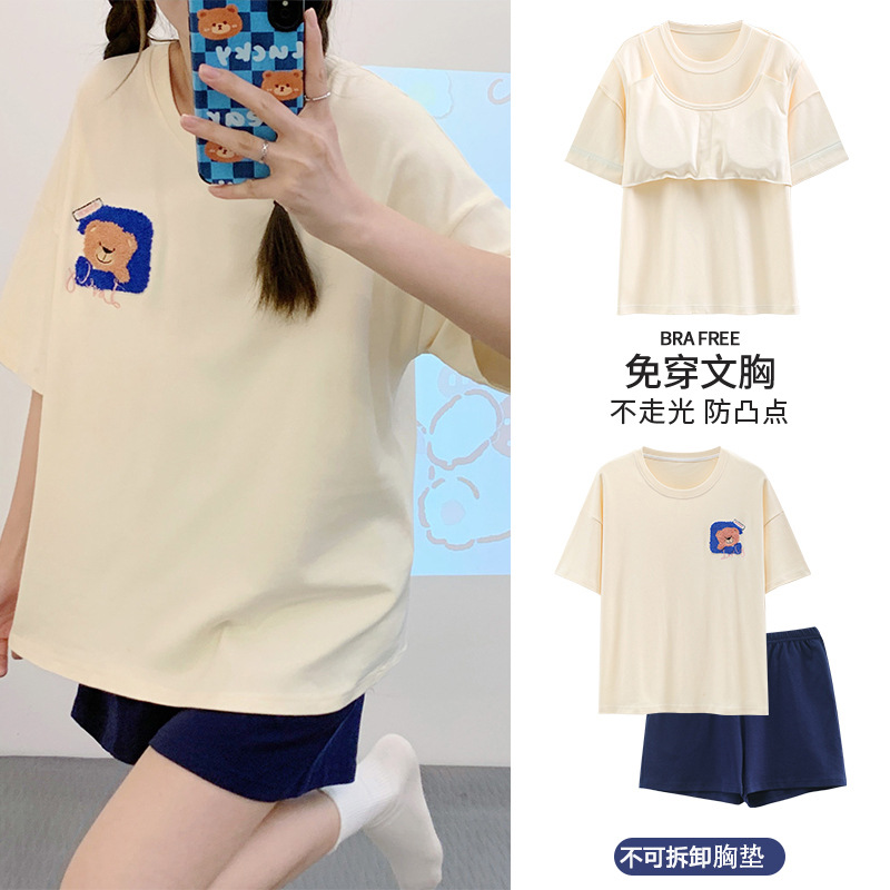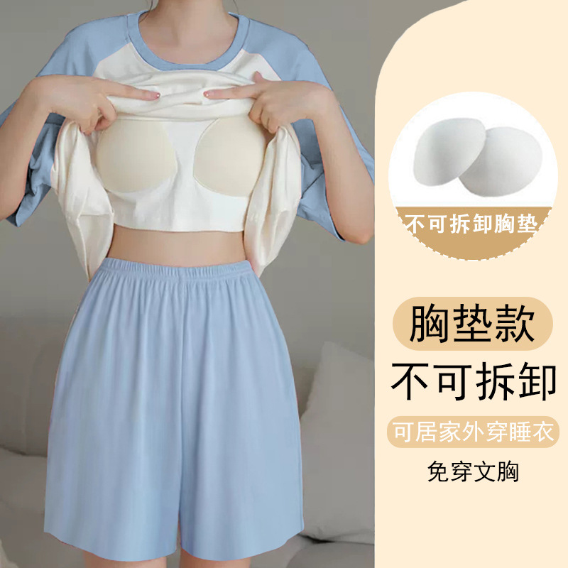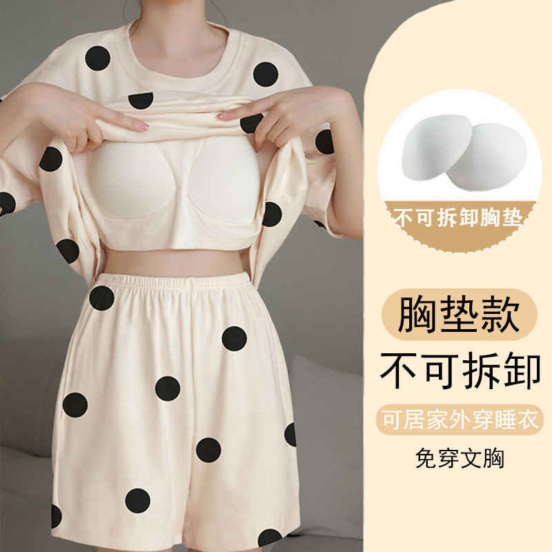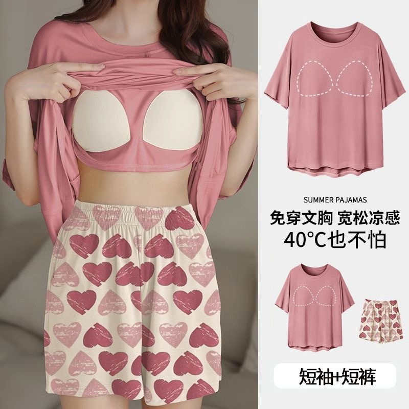 Главная страница > Трансграничные летние новые пижамы женские шорты с короткими рукавами с нагрудными подушками в полоску простой набор мультяшный домашний костюм