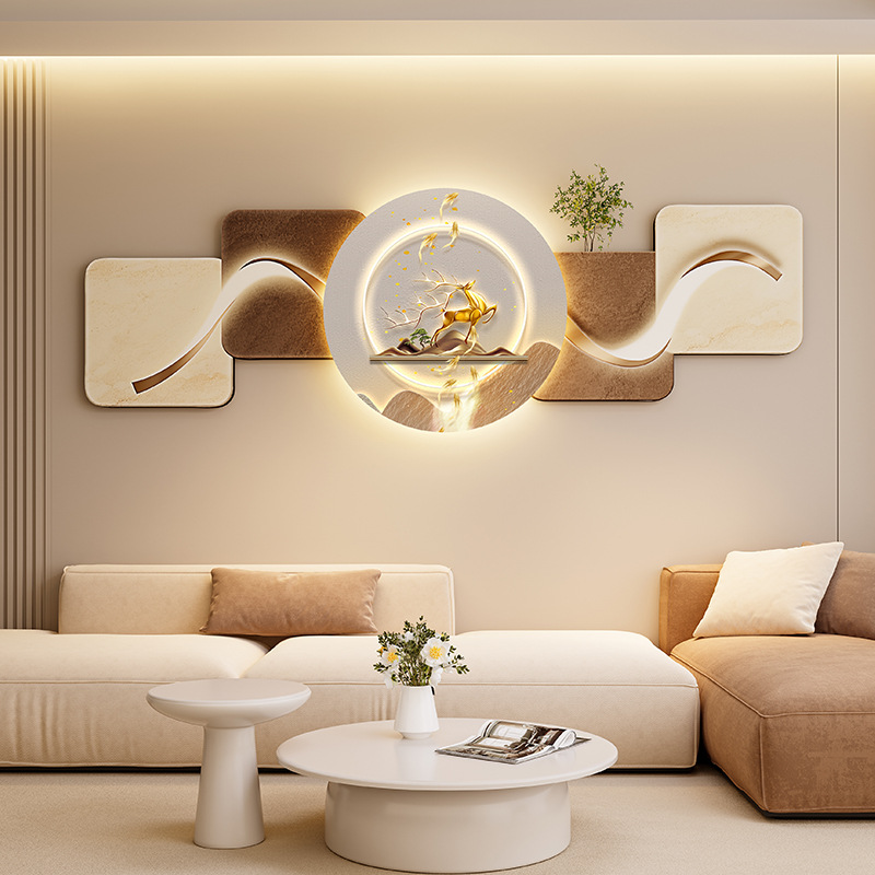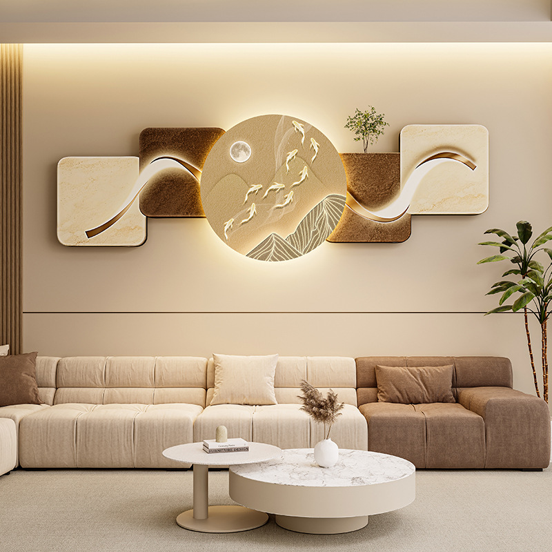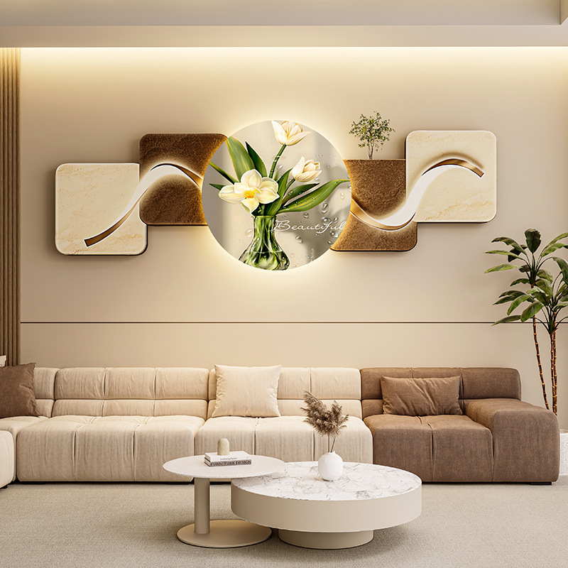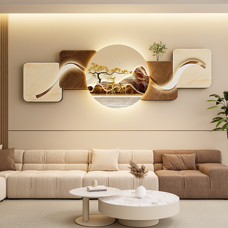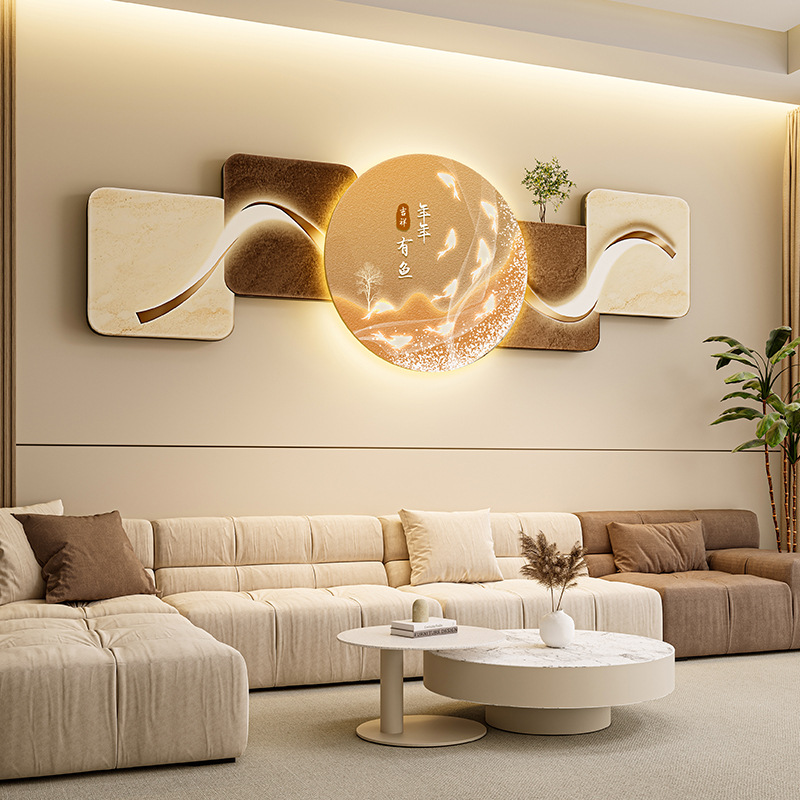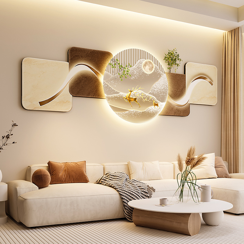 Современная минималистская гостиная декоративная роспись светодиодный свет баннер диван фон стены